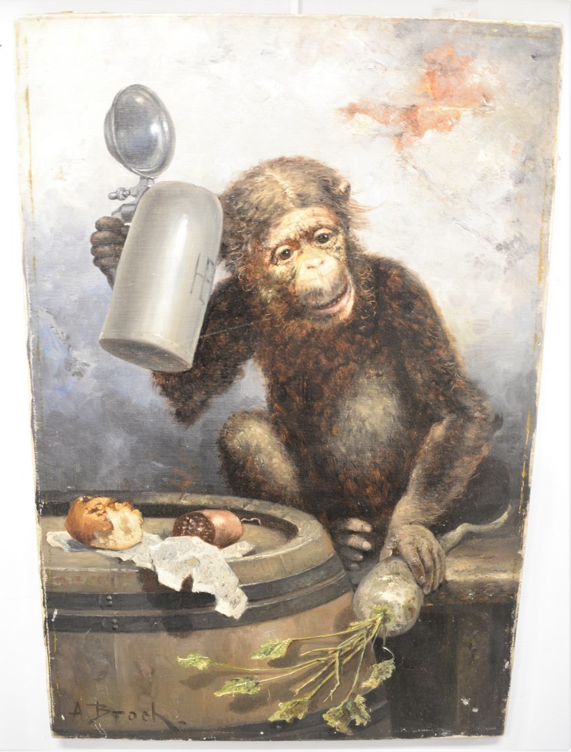 Two Piece Lot, to include a Harlequin figure and a rearing white horse, oil on canvas, initialed SR, lower right, 35 x 23 along with a clown with the devil and a ballerina in the background, oil on canvas, signed Beard, lower right, 13 1/2 x 11 1/2.