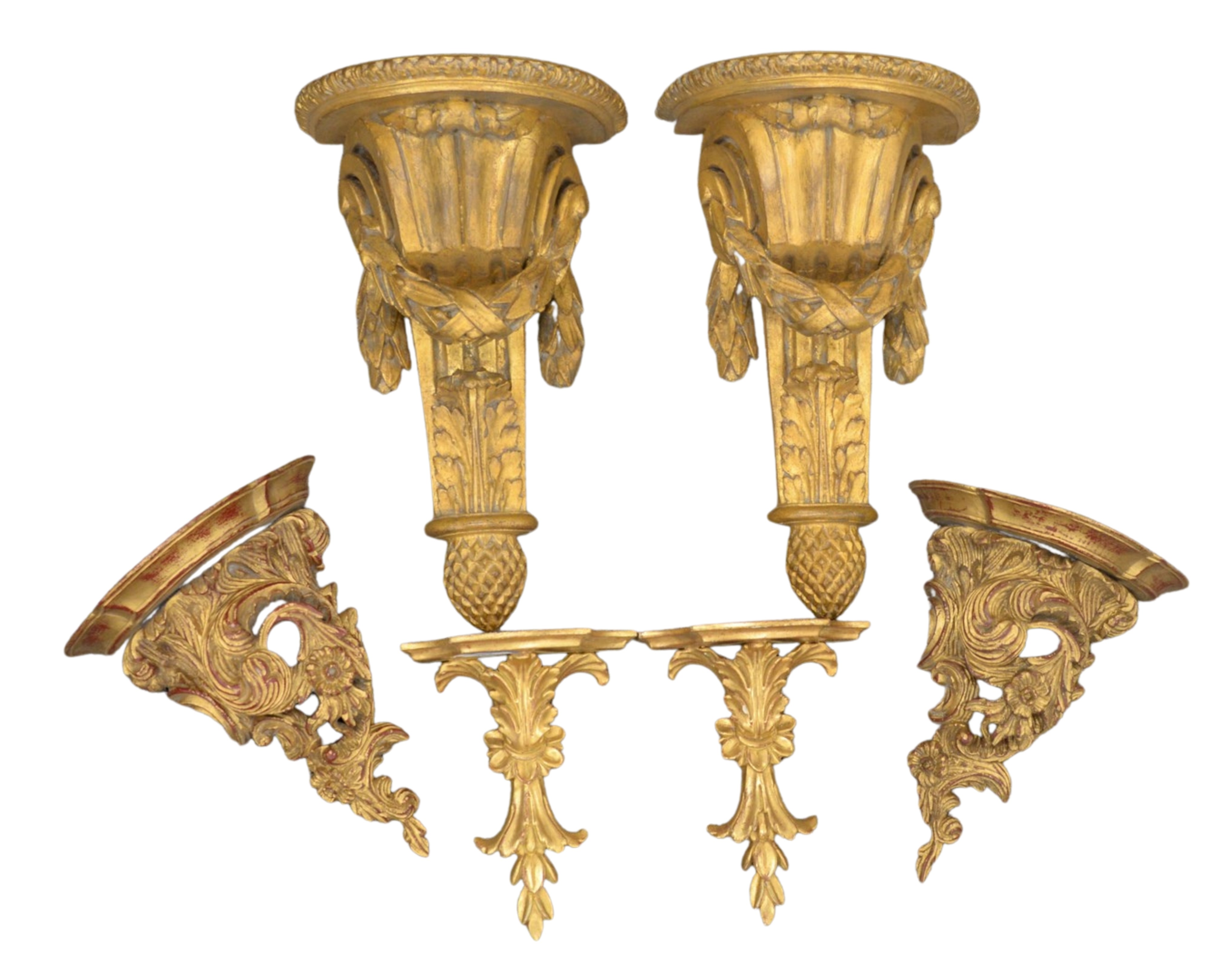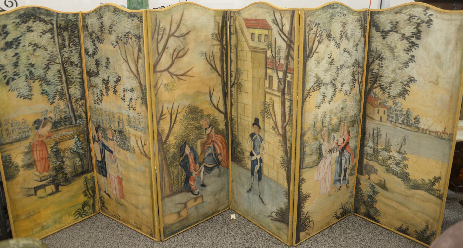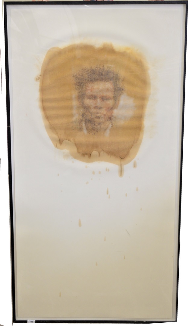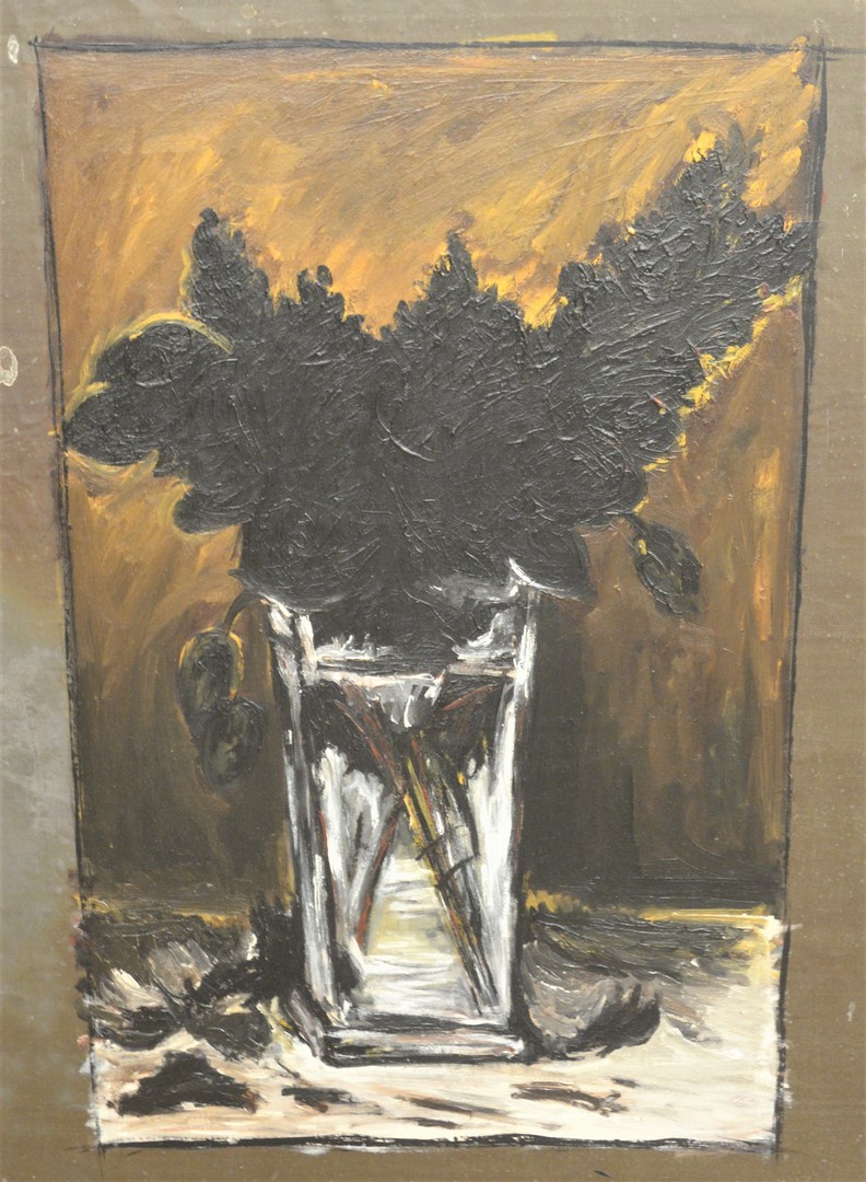 Four Piece Lot, to include Michael Hollis American, b. 1953, Grecian Echoes, 1982, mixed media with construction and ceramic tile, unsigned, 29 1/2 x 53, having a Texas Gallery label on the reverse, as is with tiles cracked and off the piece, pieces available, John Bernard Albers American, 20th century, Hand Some, 1982, painted wood, unsigned, 38 x 57 x 13, with pieces missing/damaged, along with Masaharu Matsui 20th century, Order of the Orient No. 2, acrylic screened on canvas, signed upper right M. Matsui, 26 x 36, as is with paint loss and flaking along with Peter Berg American, b. 1948, Bram’s Very Own Fault, 1981, painted wood, unsigned, overall 48 x 78.