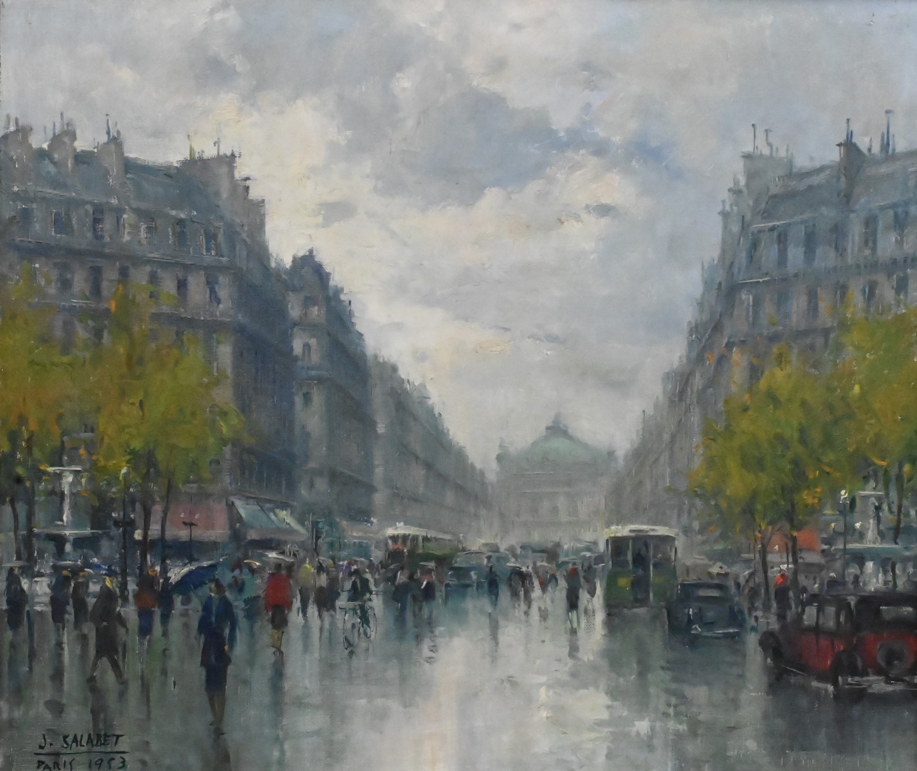Brigitte Langevin (French, early 1900’s), horse rider by a pond, oil on canvas, signed lower left “B. Langevin”, not dated, 9 3/4″ x 13 1/4″, William Haines Picture Framing label on back.