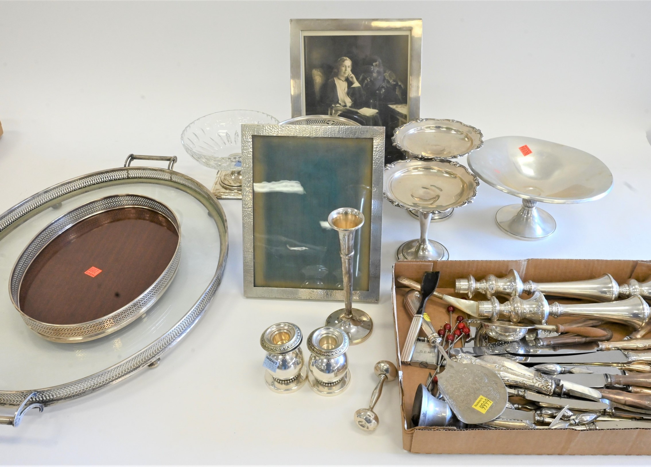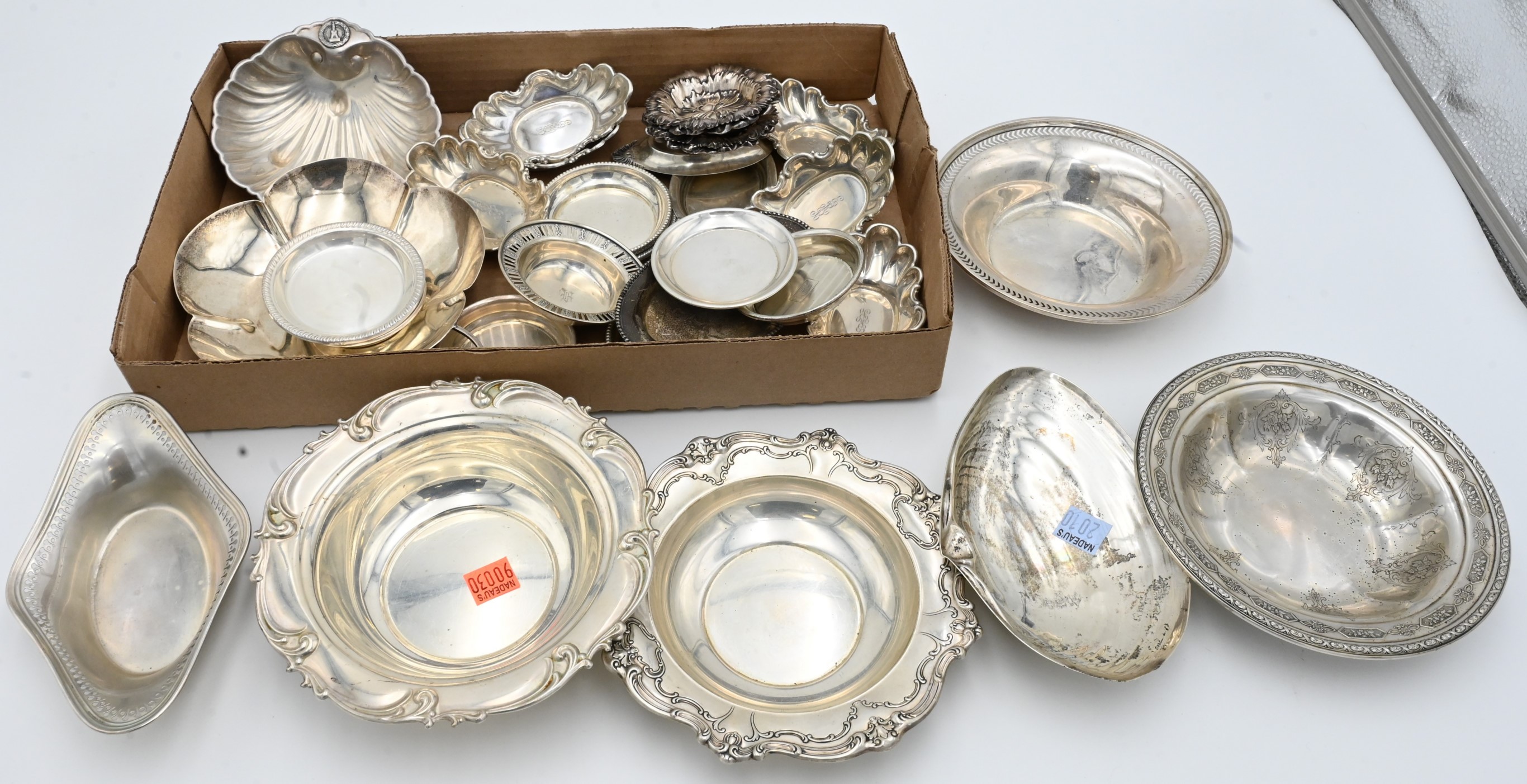Five Piece Sterling Silver Group, to include Reed and Barton cocktail shaker, Black Stone and Gorham gravy boat, tall caster, along with a ladle; caster height 8 inches, 25.3 t.oz.