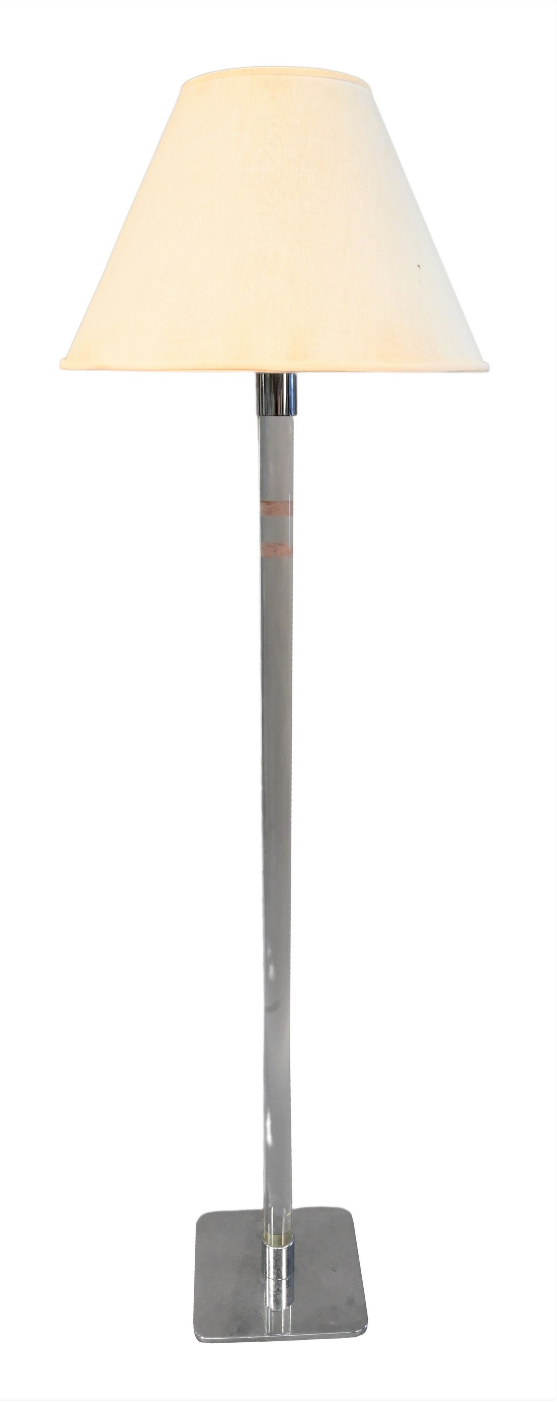 Hansen Floor Lamp, having clear acrylic shaft channeled for cord and chrome hardware, marked ‘Hansen Lamps, New York’, scuffs and scratches, missing chrome foot, height 57 1/2 inches. Provenance: Property from a private New York collection sold to benefit charitable foundations.