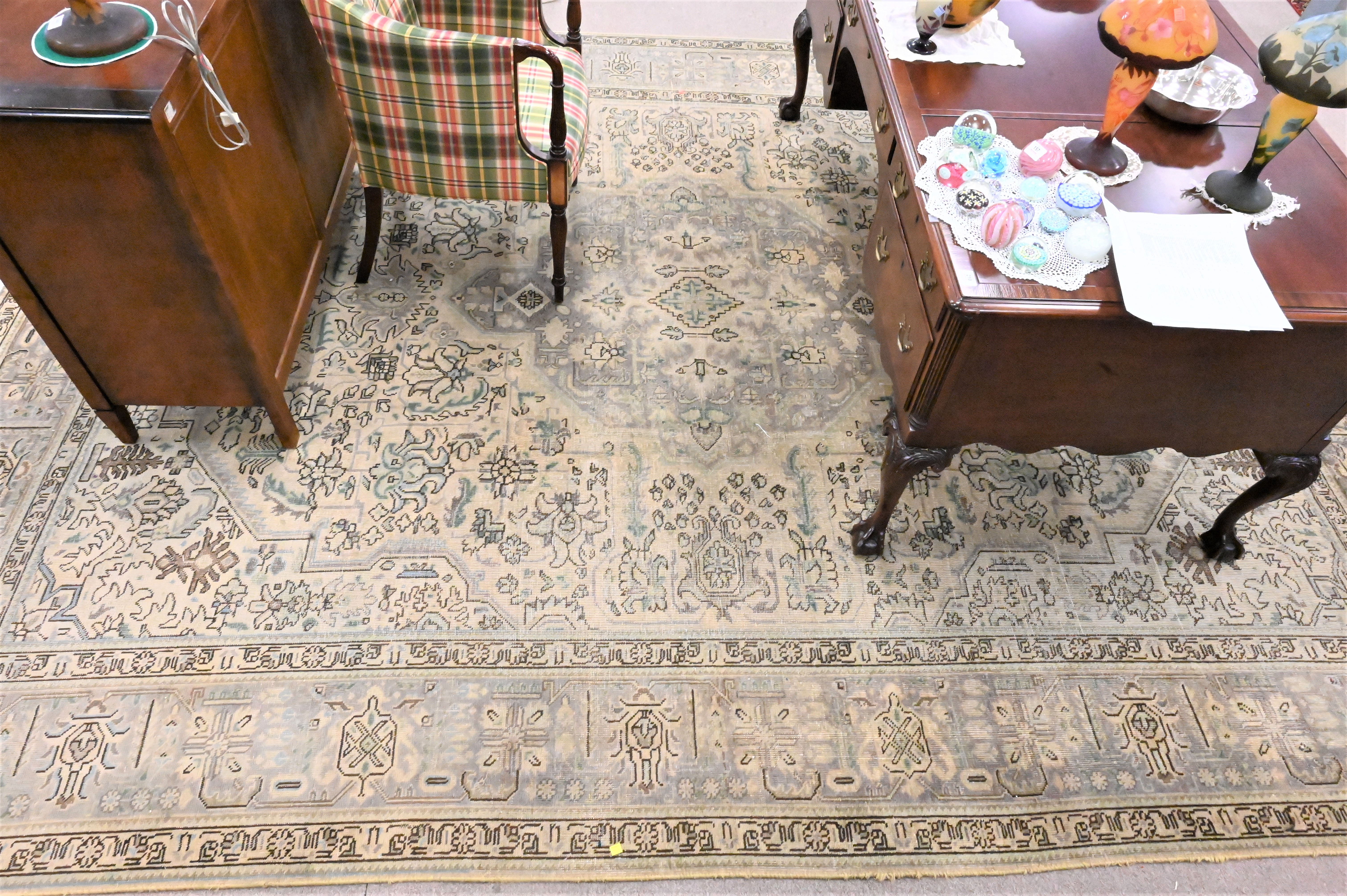 Minton Spidell Two Part Country Secretary Desk, top having two grillwork doors set on drop front base opening to writing surface, fitted interior over two drawers set on cabriole legs, height 88 inches, width 55 inches, depth 26 inches.