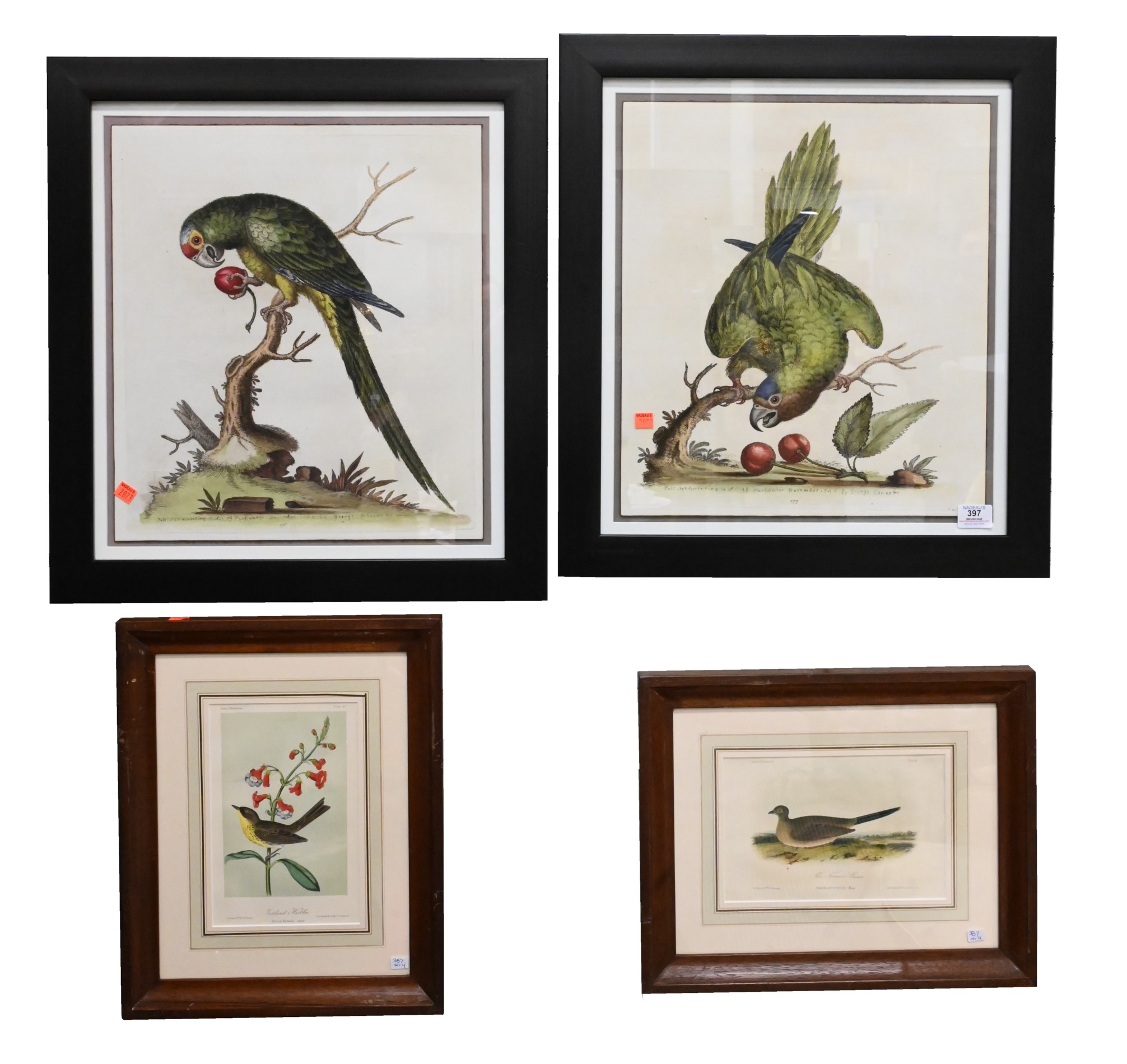 Eight Piece Framed Bird Grouping, to include a three piece set of parrot prints after George Edwards, 17 3/4″ x 16″; giant hummingbird study print, 3 1/2″ x 6″; along with four illustrations of birds by Wm. E. Hitchcock lithograph, colored by TJ Bomer, 6 1/2″ x 9 1/2″.