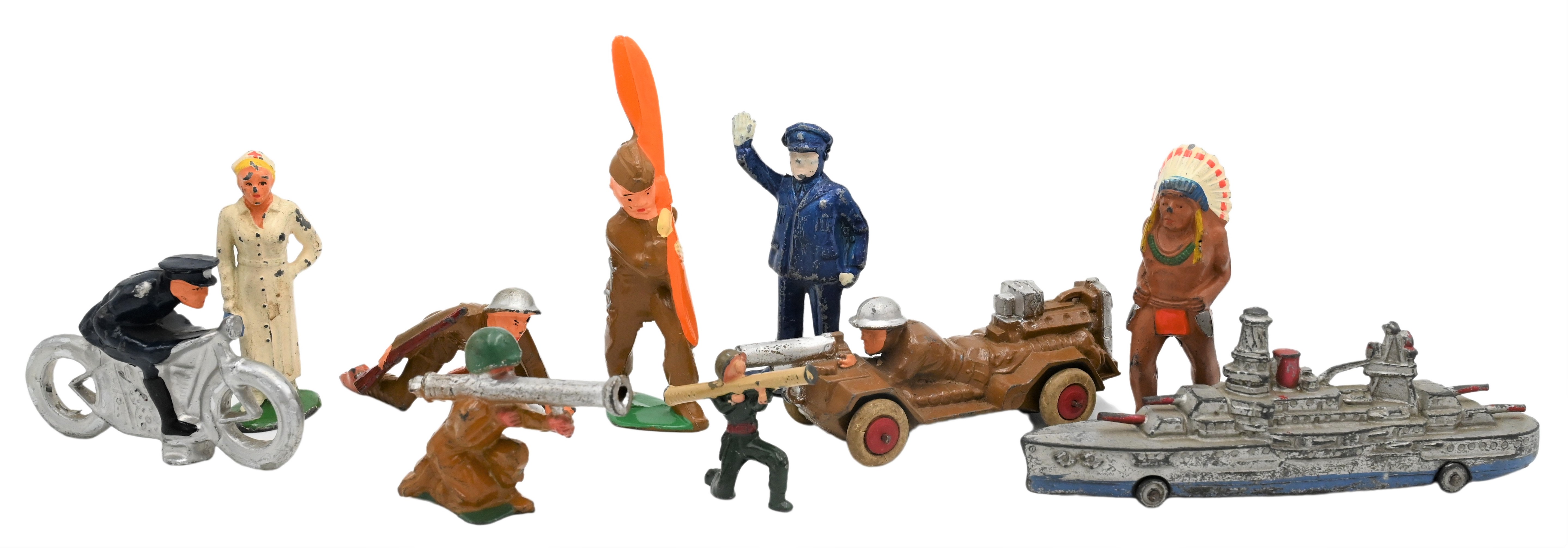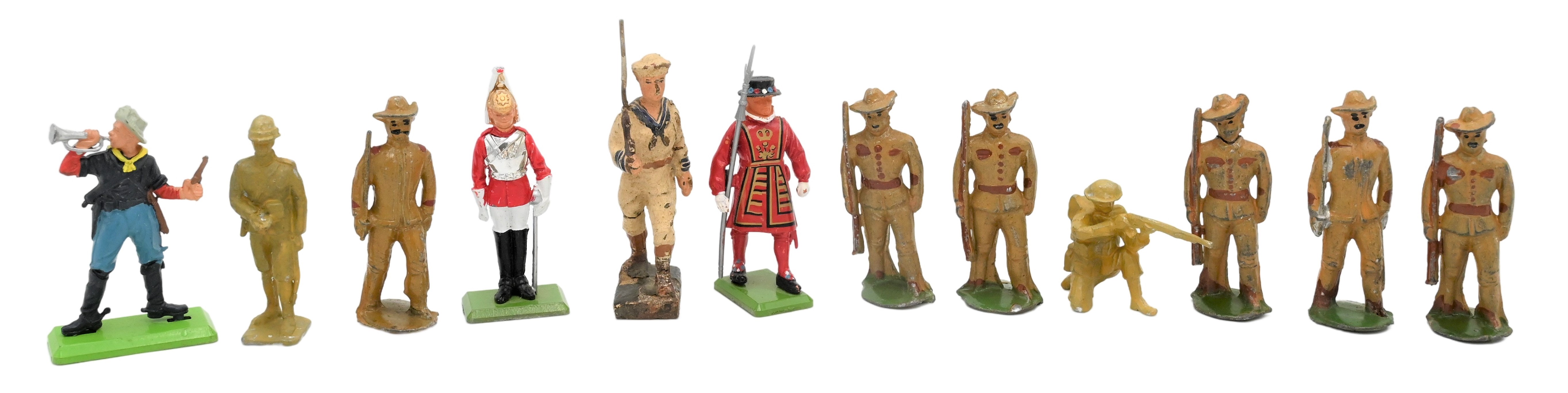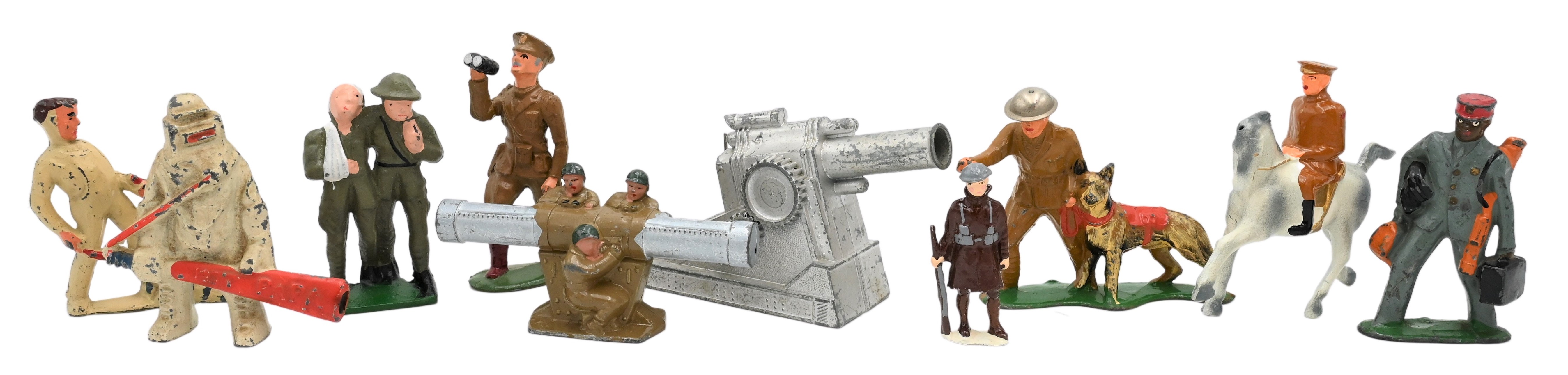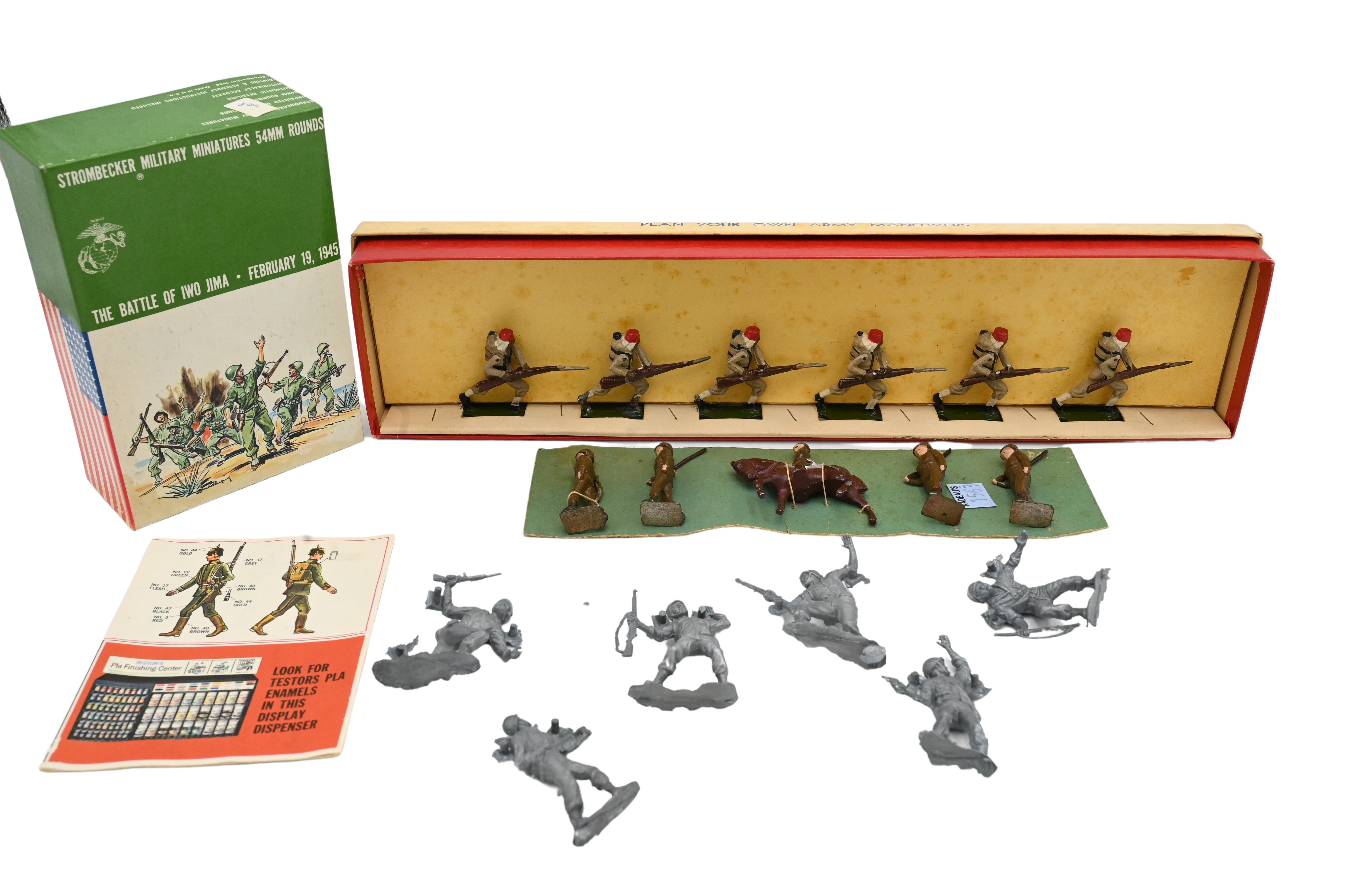 Two Box Lots of WWI and WWII Memorabilia, to include Tamiya metal model figures, Warriors of the Wood series III, The Ultimate Soldier WWII action figures, in original packaging, as is, along with loose hand painted metal toy soldiers.