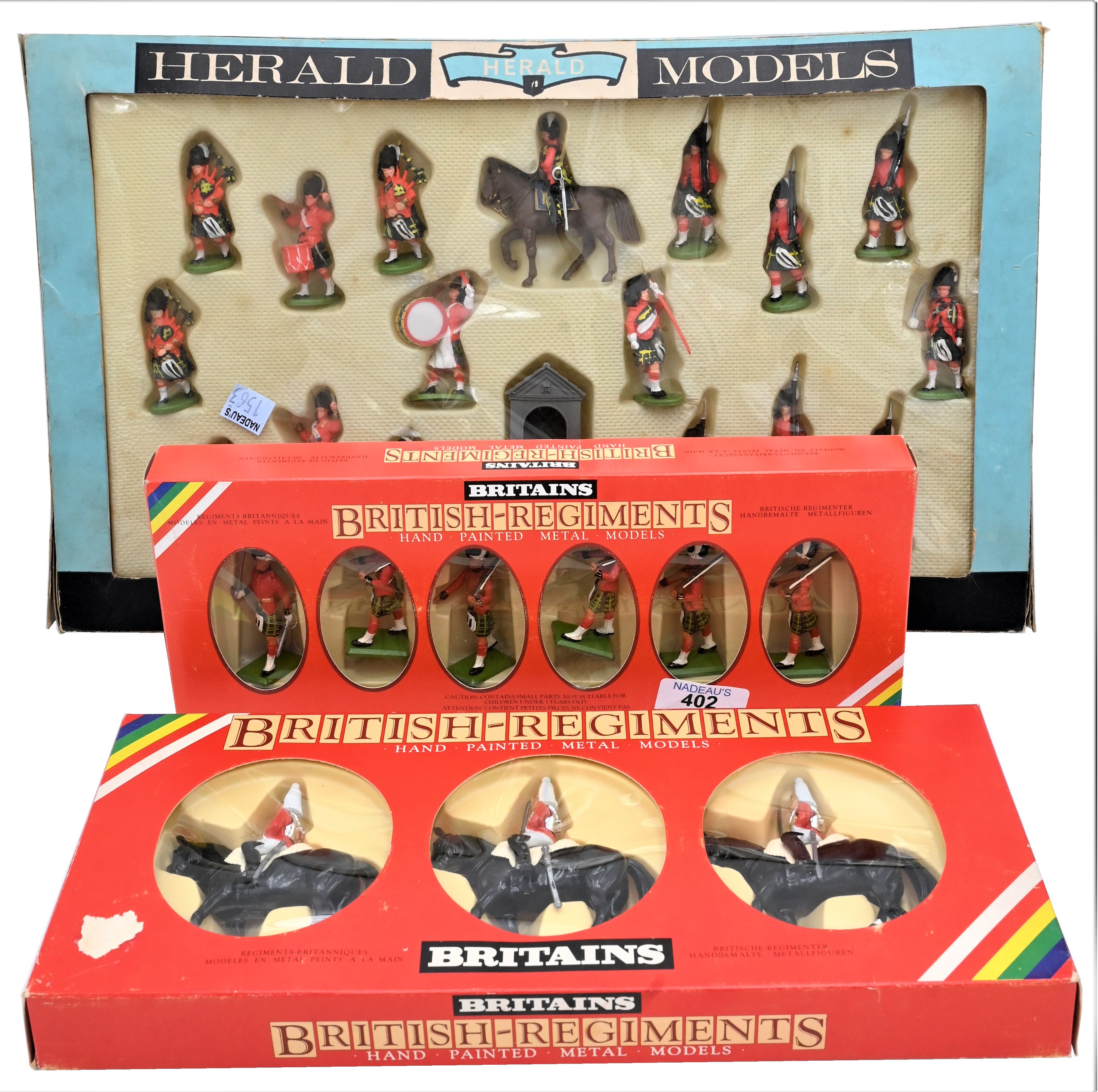 Lot of Britain’s Limited Metal-Models Toy Soldiers, hand painted, to include “Queen’s Color Party”, “U.S. Army Color Party”, Mounted Lifeguards”, in original packaging, as is.