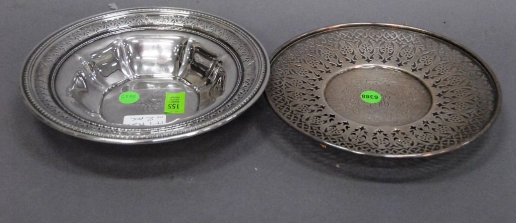 Two sterling silver pieces plate and bowl, 14.9 t oz.