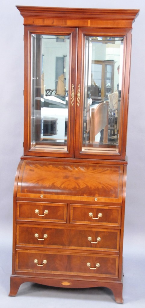 Mahogany secretary desk with roll top, ht. 6ft. 6in. wd. 30in.