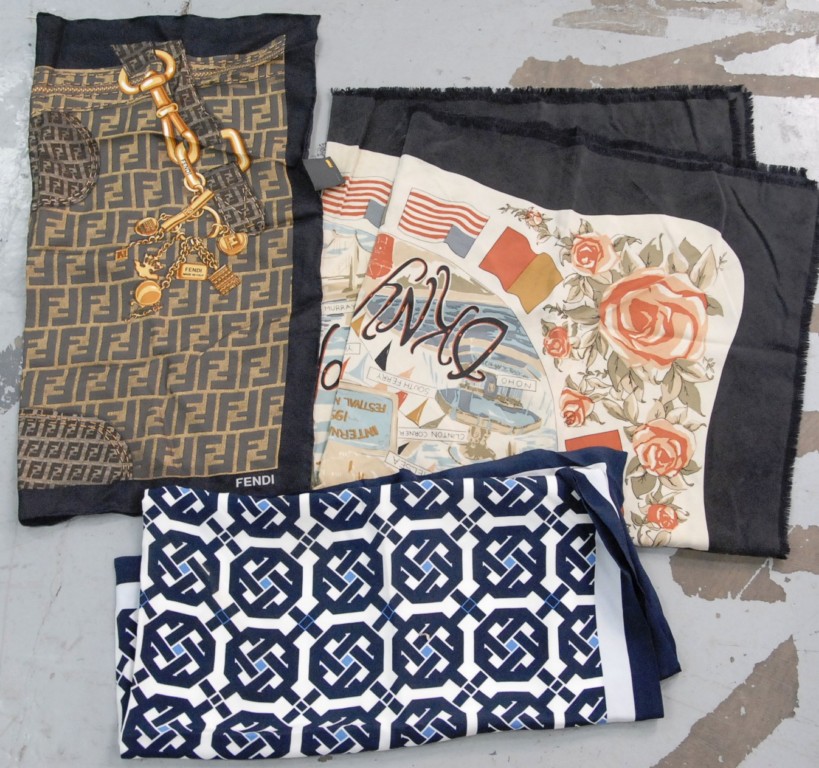 Group with Three scarves Fendi, DKNY, and Juicy Couture.