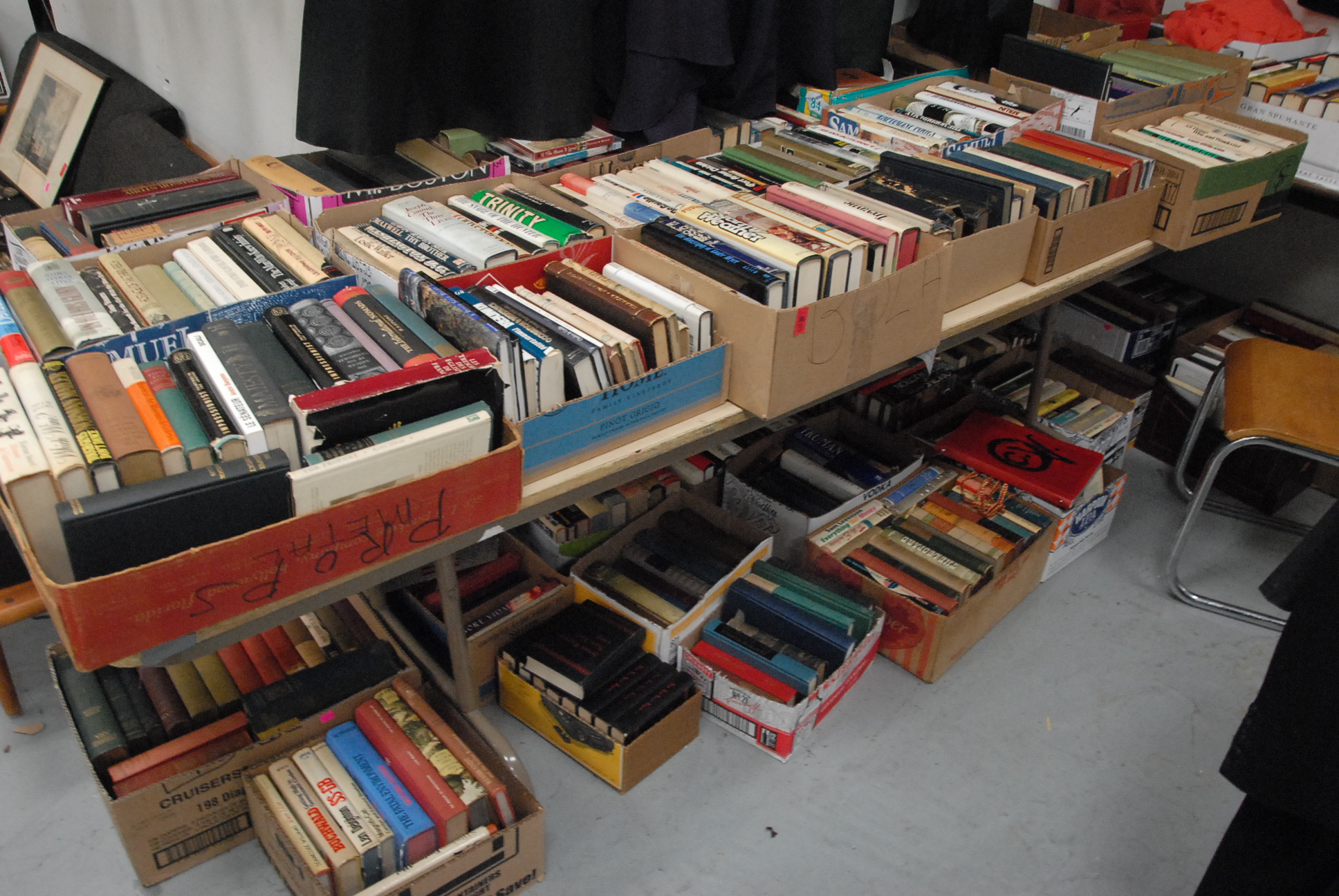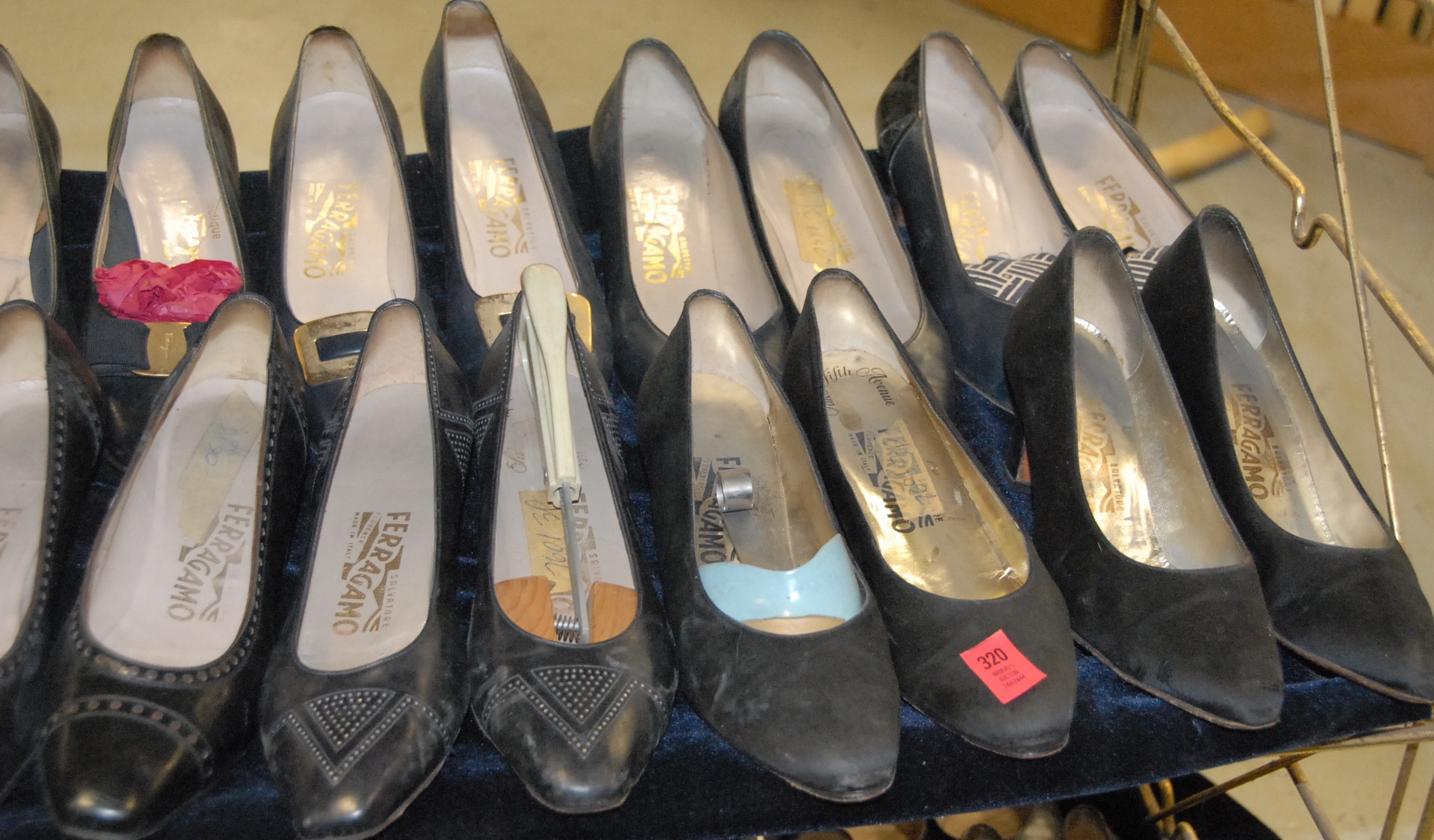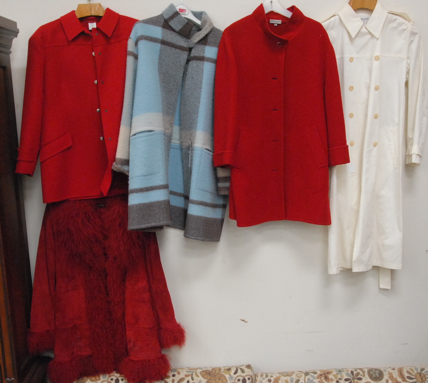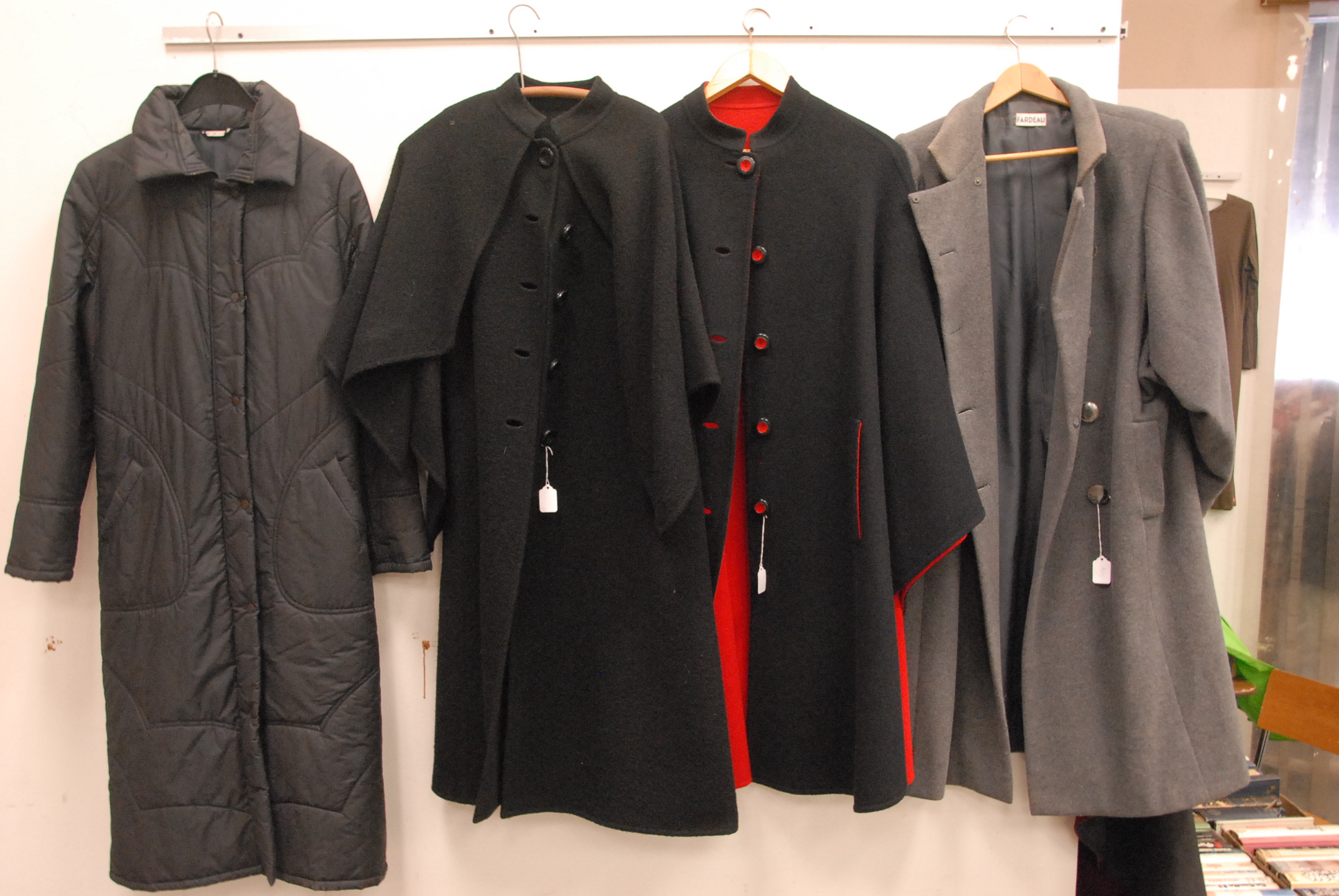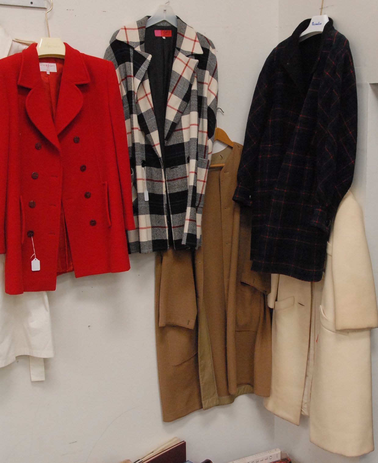 Entire rack, both sides, of men’s and woman’s clothes including Gump’s silk shirts, Chinese Arts & Crafts silk shirt, Yve Saint Laurent, and various other clothes including beaded woman’s vest.