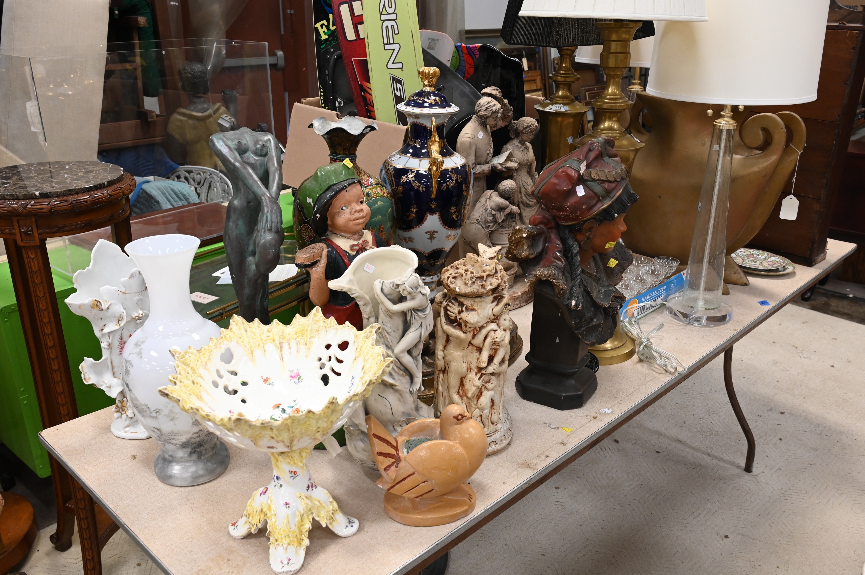 Large Lot to Include Wine Glasses, Lamps, Vases, and Plaster Figures