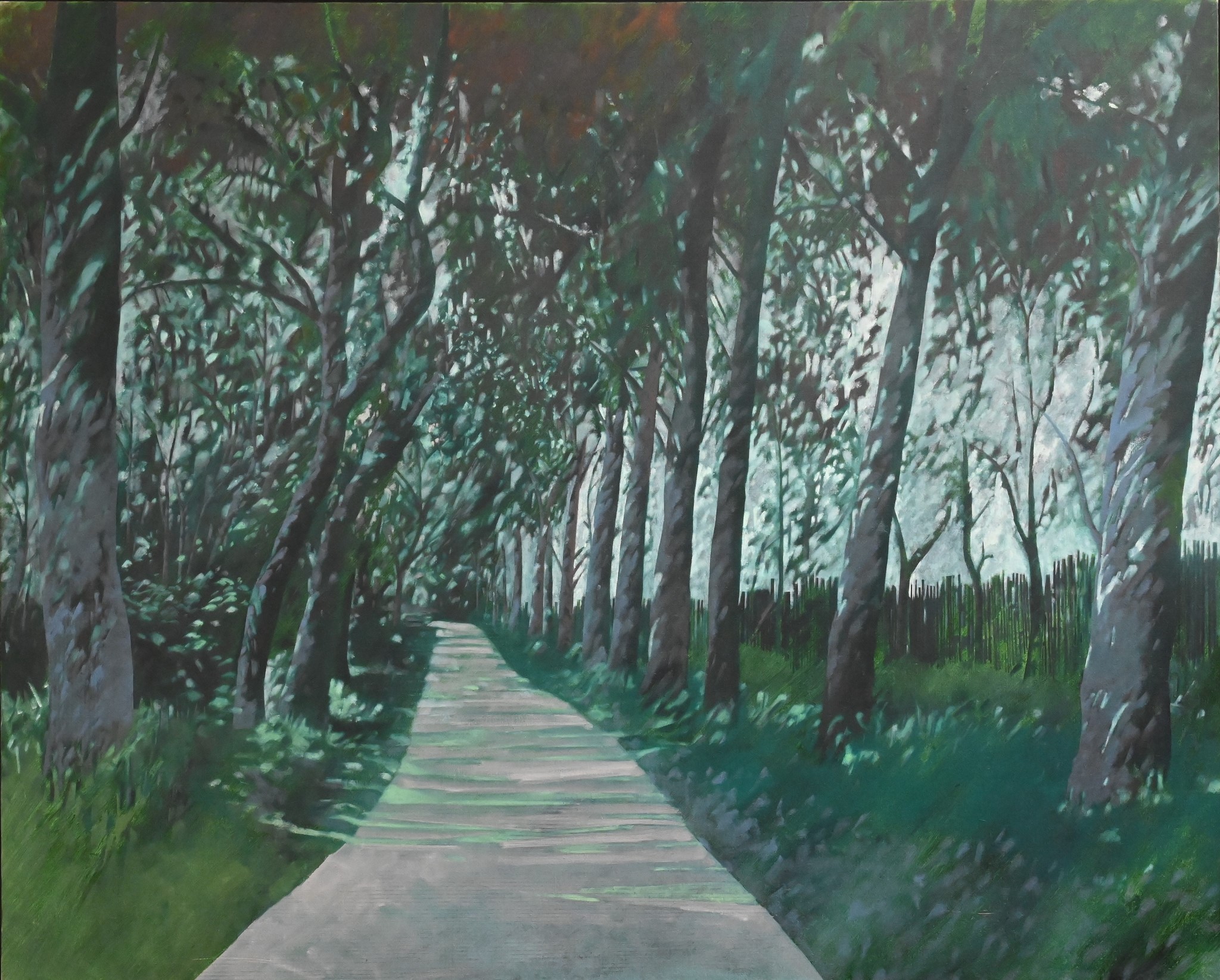 Oil on canvas, in a vintage wood frame by Inter-Atlantic Frame Corp., New York