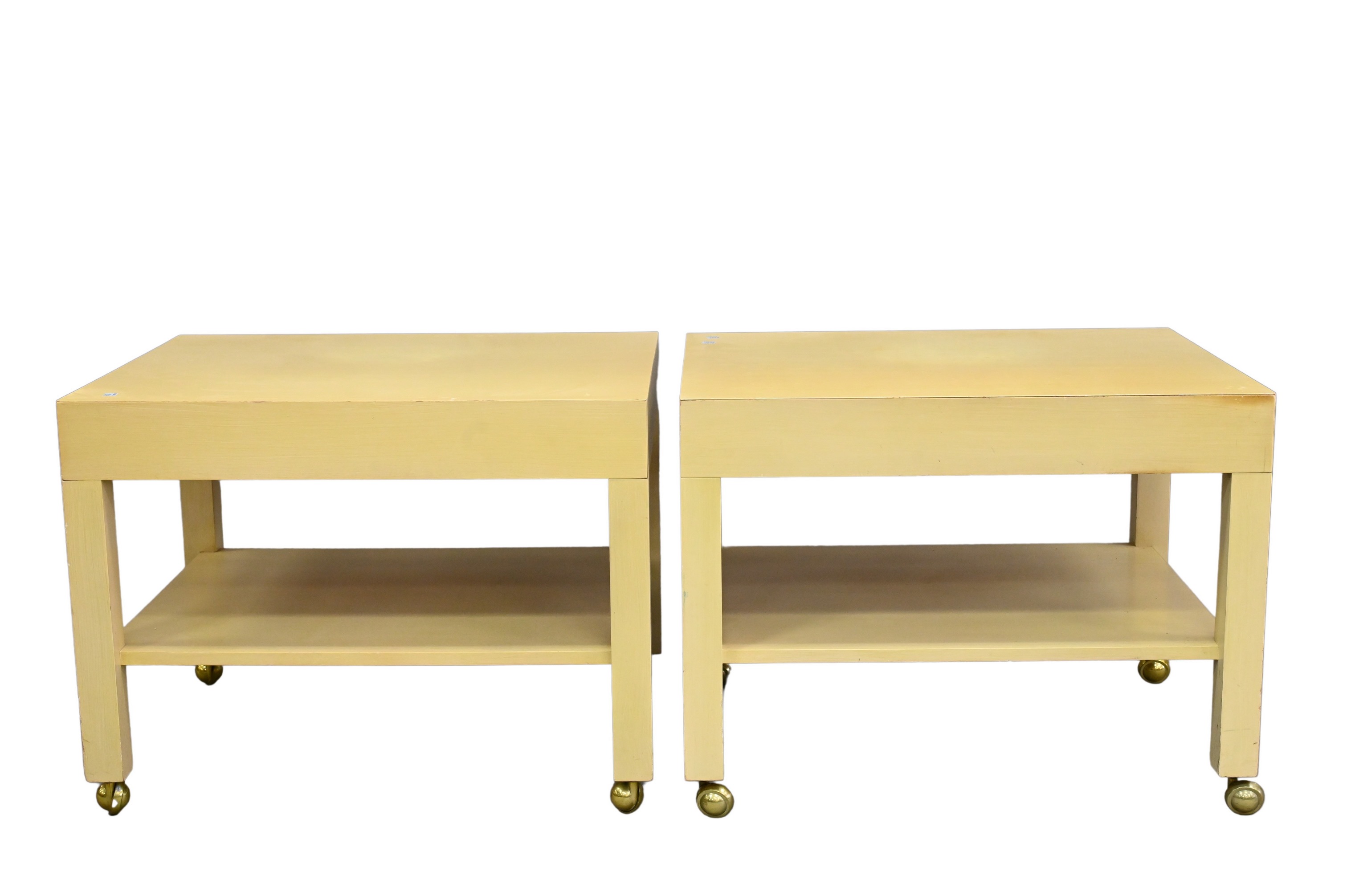 having two door glass top set on base having two tambour doors opening to central interior drawers flanked by interior shelving