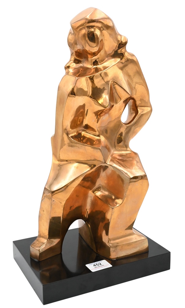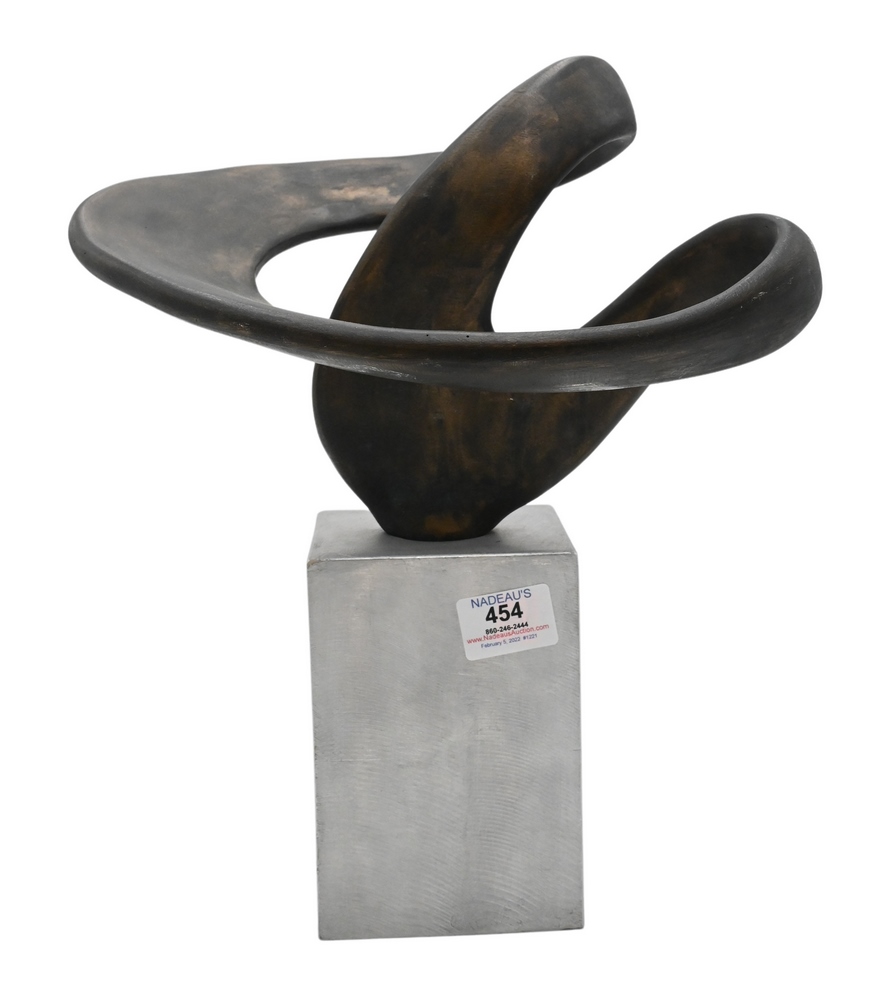 Kieff Antonio Grediaga (born, 1936), bronze abstract sculpture on stone base, untitled, signed lower center height of sculpture 9.5 inches height with base 11.5 inches.