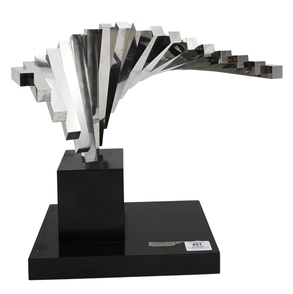 David Lee Brown (American, 1939-2016), “1-70”, 1970, stainless steel, signed with the artist name on the underside of a bar, overall height 15 inches, width 15 inches, depth 10 inches.