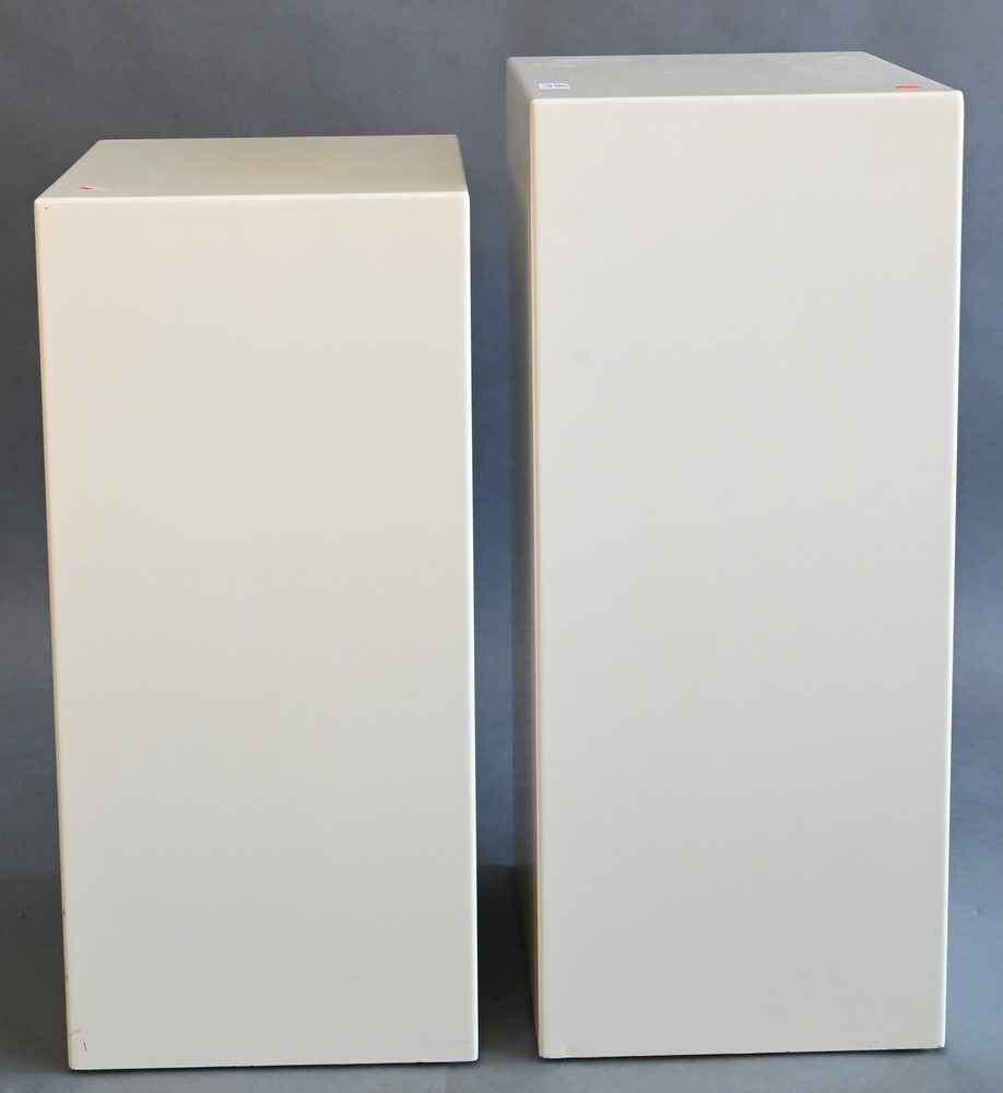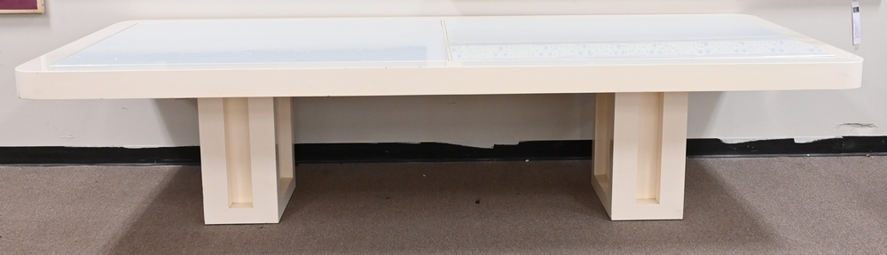 Large Contemporary Custom Ivory Lacquered Dining Table, having ivory lacquered and glass top on pedestal base, similar to Enrique Garcel, height 29 1/2 inches, top 48″ x 120″.