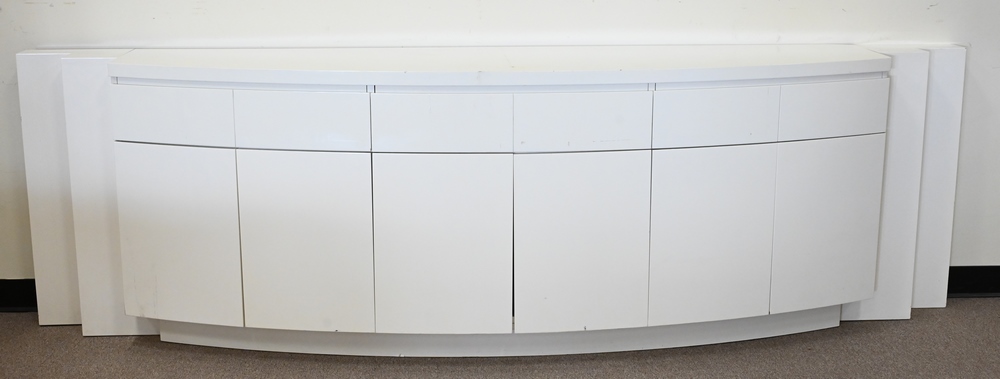 Large Contemporary Custom Ivory Lacquered Sideboard, having three drawers over six doors, similar to Enrique – Garcel, height 32 inches, length 108 inches.