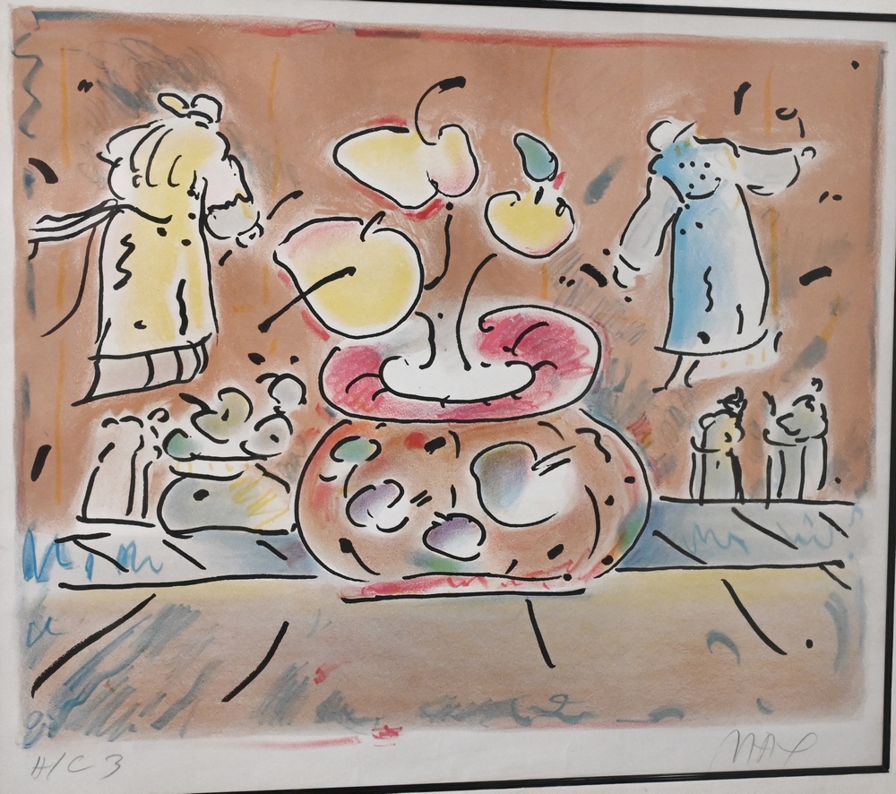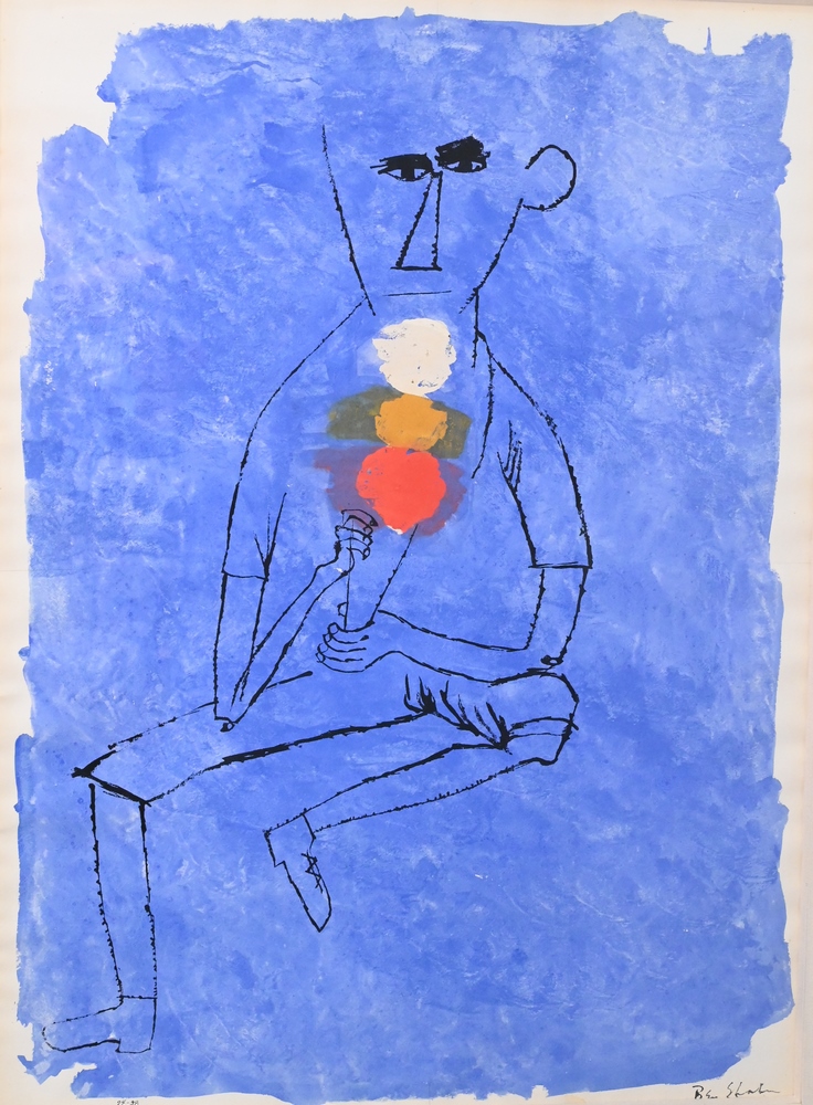 Ben Shahn (1898-1969), Triple Dip 1952, numbered lower left 24-58 in ink, signed Ben Shahn lower right in ink, Provenance: From Downtown Gallery, no. 4 Nelson Rockefeller 1954, #25-646, Estate of Nelson A Rockefeller #C29, 29.5″ x 22.5″.