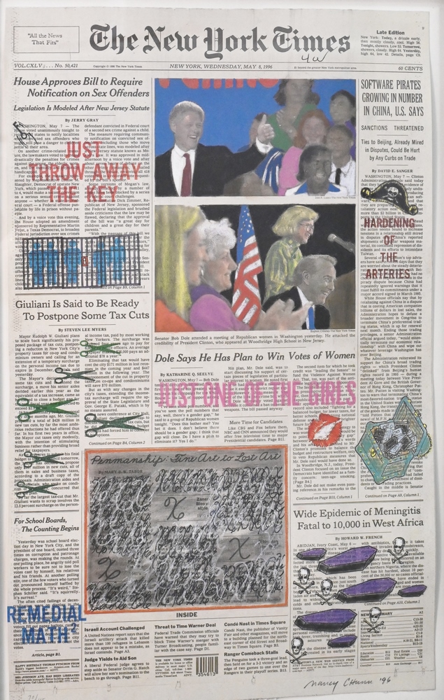 Nancy Chunn, (b. 1941), NY Times May 1986, gouache on newsprint, edition 70/115, 22″ x 13.5″. Provenance: Property from the Estate of Anita and Burton Reiner.