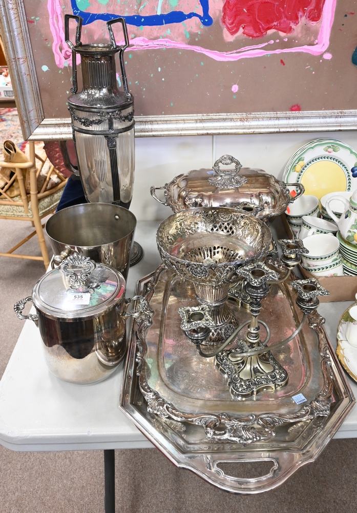 Large Group of Assorted Items, to include modern trays, place mats, gilt lacquered plates, Nacco enameled pot, Dansk dish, danish tray, glass plates, and brass pots.