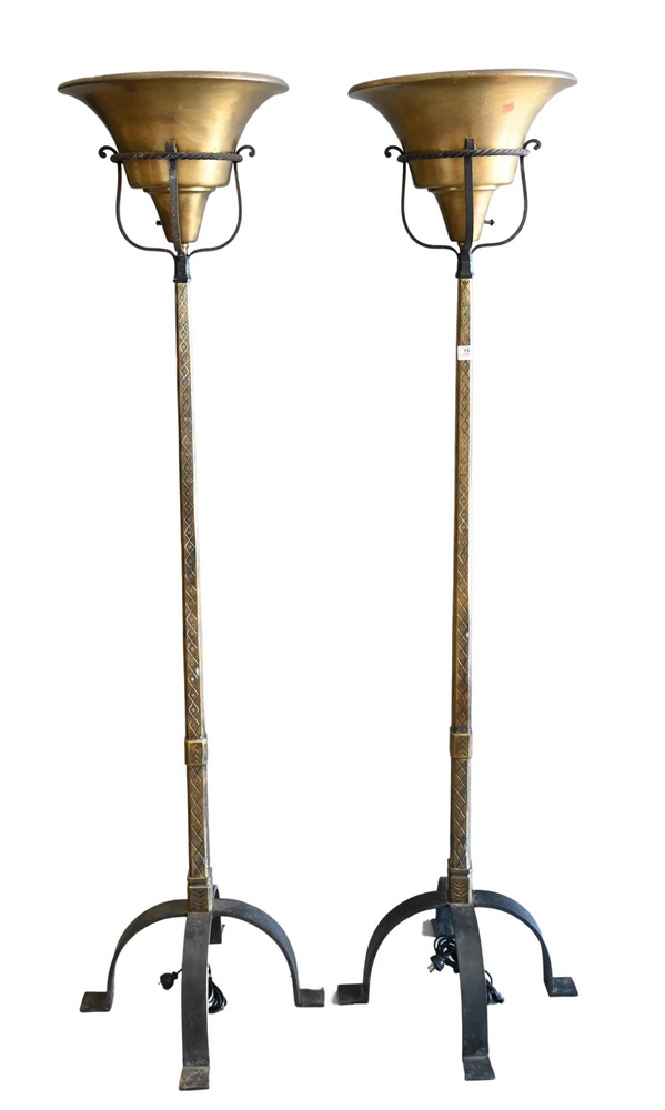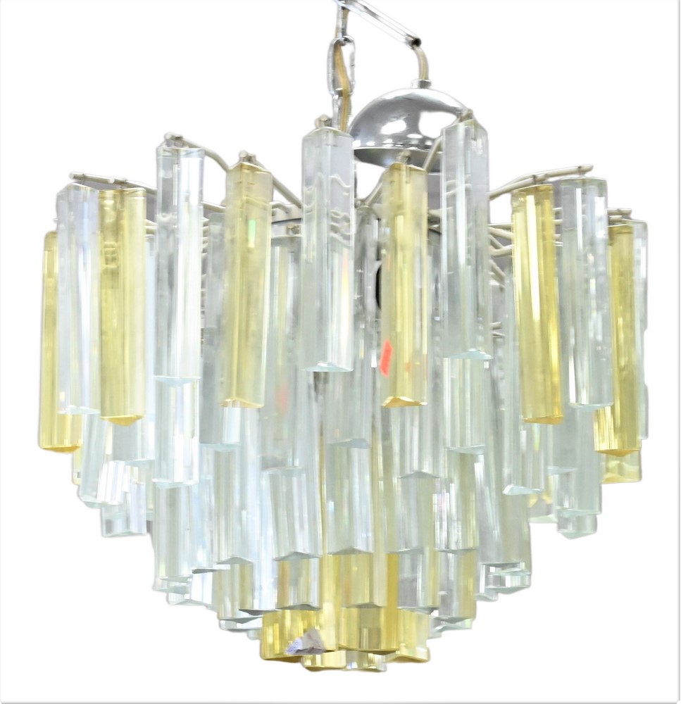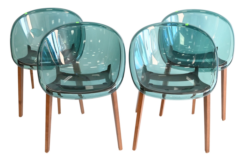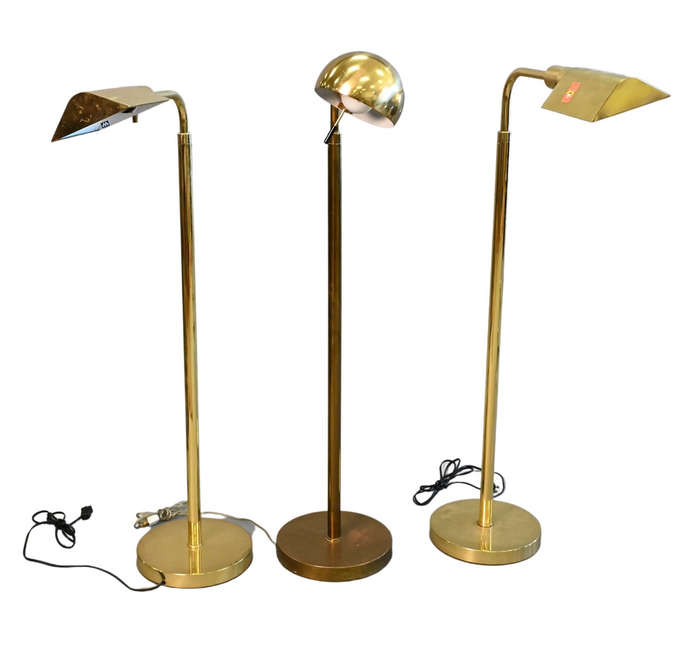 Five Contemporary Table Lamps, to include celadon triple gourd vases on lucite bases, height 24 inches; along with a pair of frosted amber art glass lamps, height 25 inches.
