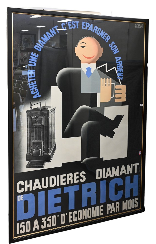 Francis Bernard (1900-1979), Gaz 1928 Editions Paul Martial, Paris, this poster was the focus of the French Exhibit at the 1928 Advertising Art Exhibition in Munich Germany and is one of the masterpieces of French Art Deco Poster styles, 61″ x 45″.