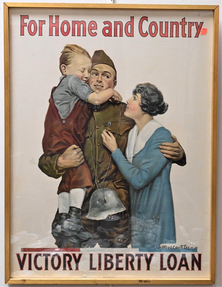 Two Posters, Zulla Goudron Roubaud Aperitif Hygienique, Throat Medicine poster with parrot, 63″ x 47″; and Victory Liberty Loan Alfred Everitt Orr, 39.5″ x 29.5″.