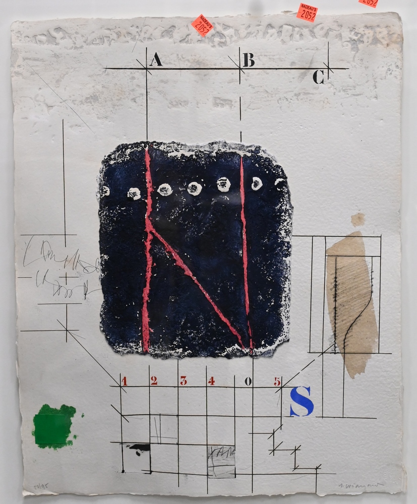 Josep Guinovart Y Bertran (Spanish, 1927-2007), Untitled abstraction, gouache and etching on paper, signed, dated and numbered in pencil through the lower margin 10/50 Guinovart 79′, River Gallery Letter on verso, image size 25″ x 19″.