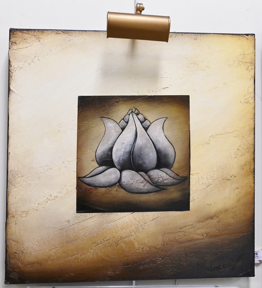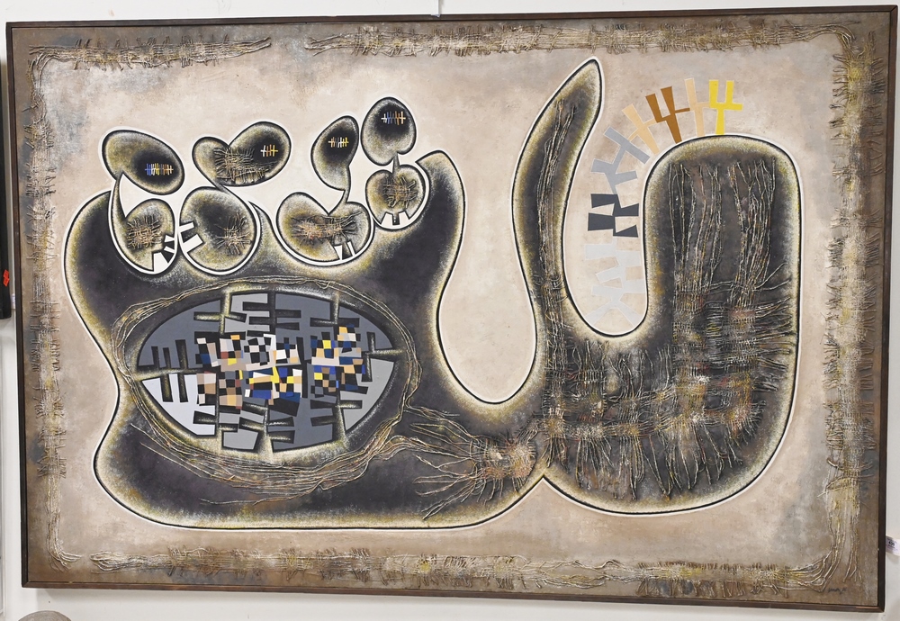 Emilio Rodriguez Larrain (1928-2015), Earth 1964, oil on paper mounted on board, unsigned, original paper label on verso, purchased 1966, frame 56.5″ x 79.5″.