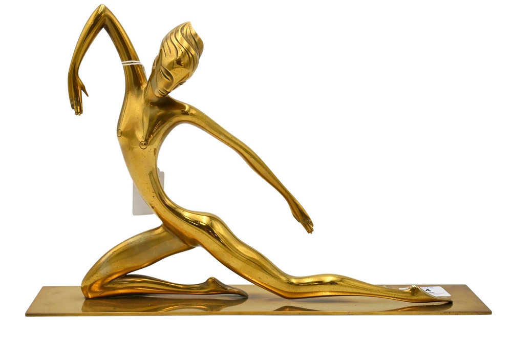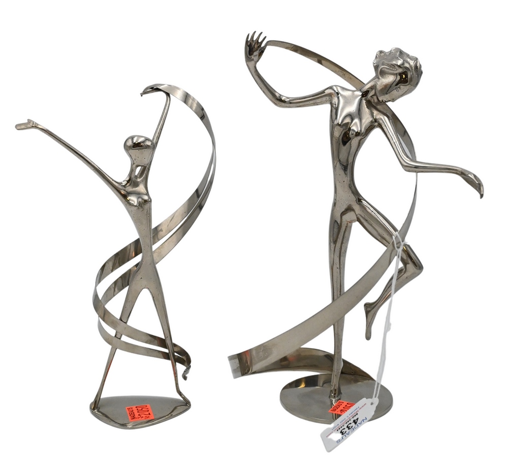 Two Franz Hagenauer (Austrian, 1906 – 1986), chrome sculptures of dancers with ribbons, marked bottom with Hagenauer Wien, height 10 1/5 inches and 9 1/4 inches.