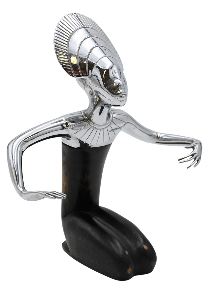 Franz Hagenauer (Austrian, 1906 – 1986), Egyptian figure with chrome head and arms and wood carved torso and legs (broken and piece missing), height 8 3/4 inches.