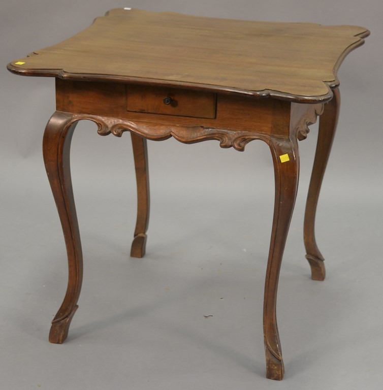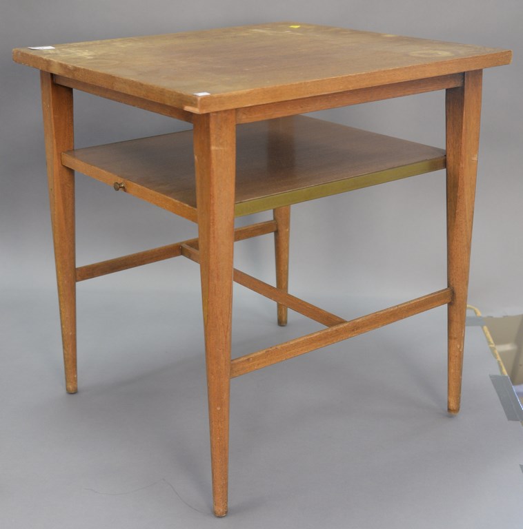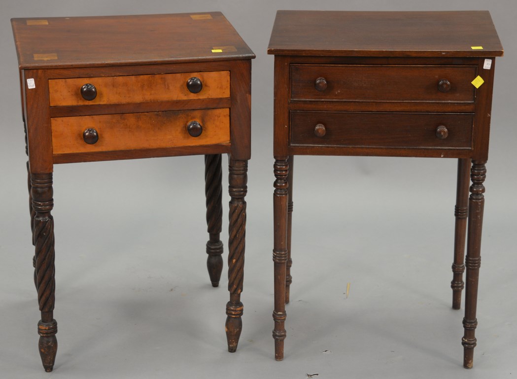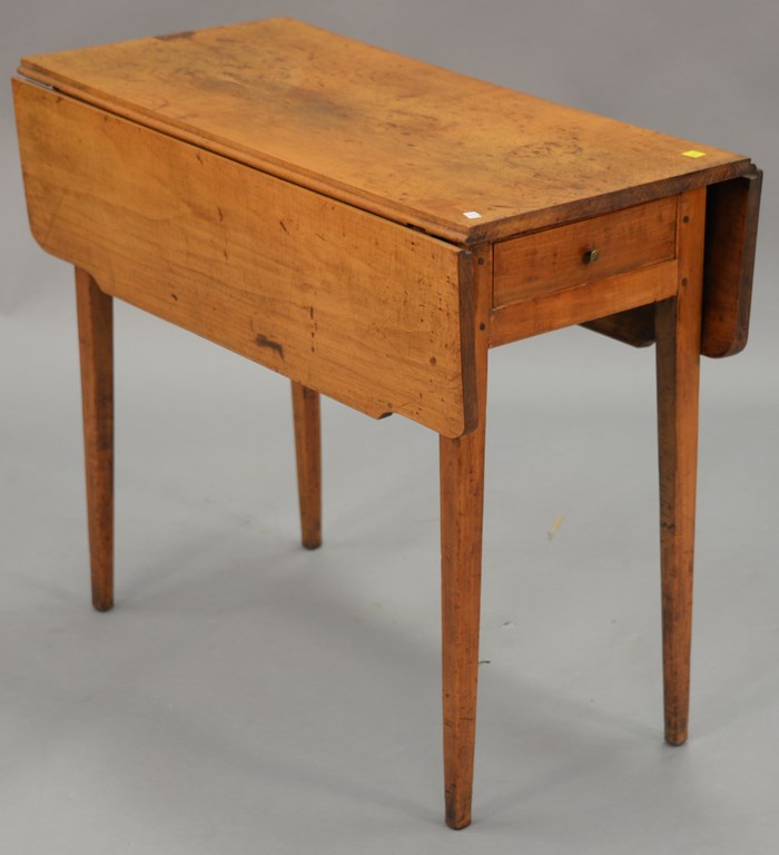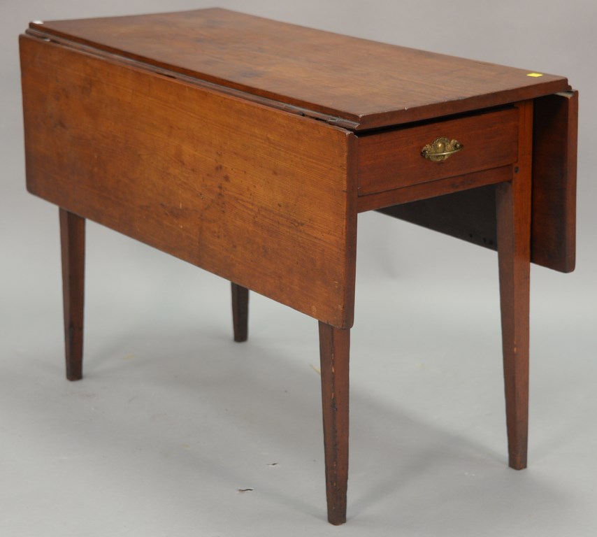 Three primitive tables to include a Federal drop leaf table and two primitive tables each with drawer, primitive table, ht. 25 in., top 15 1/2 x 23 1/2 in., drop leaf ht. 27 1/2 in., top 33 x 33.