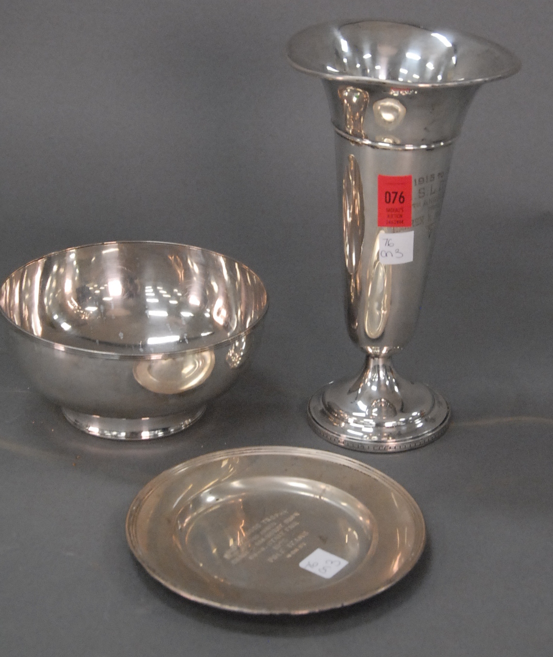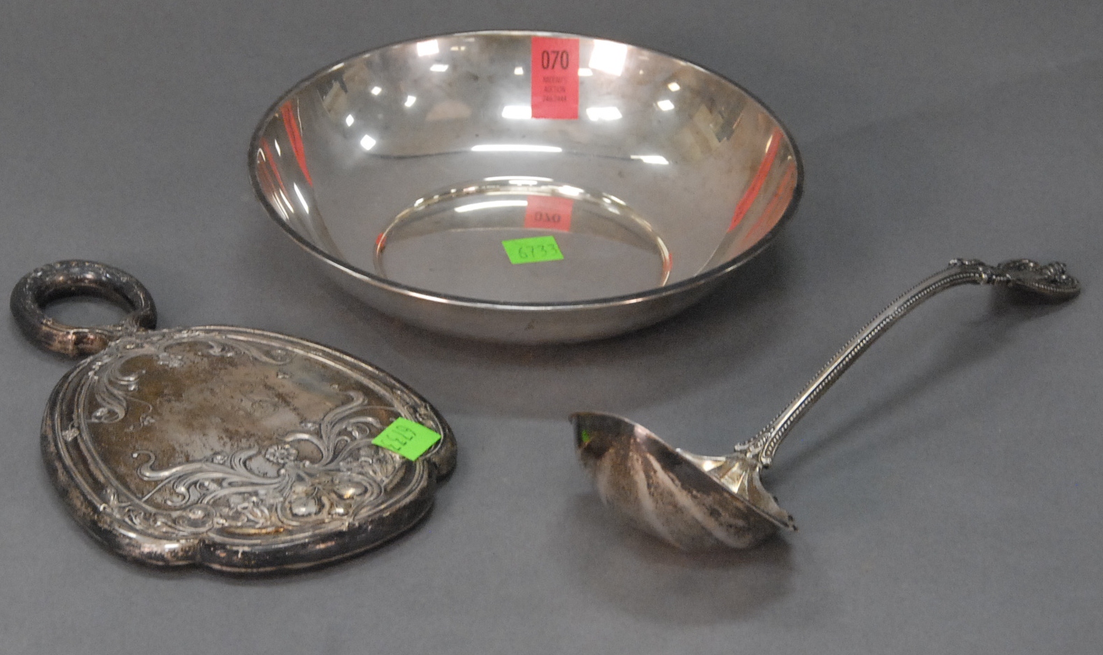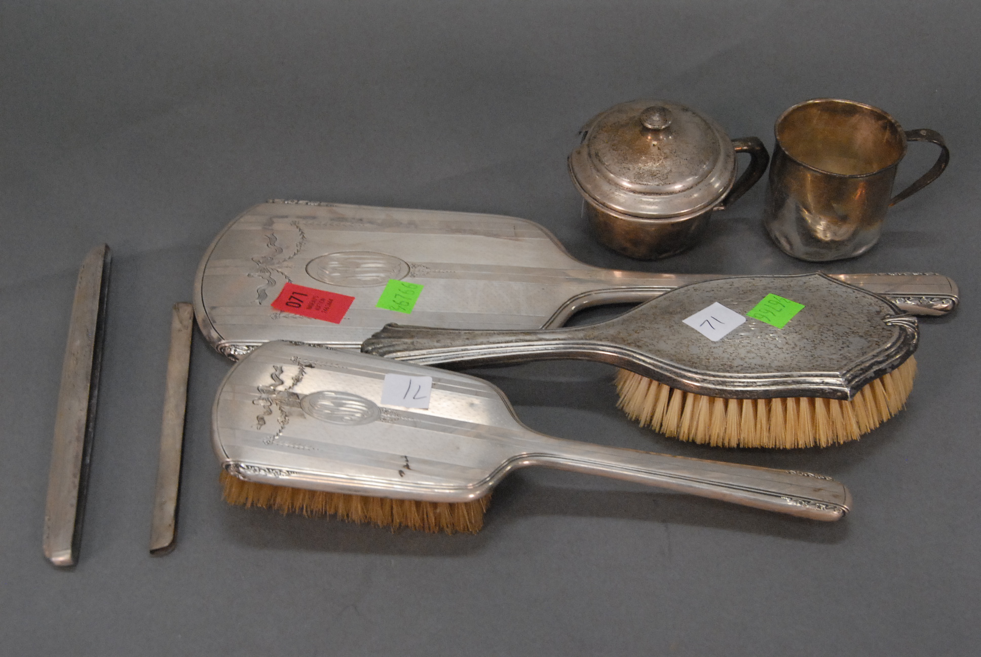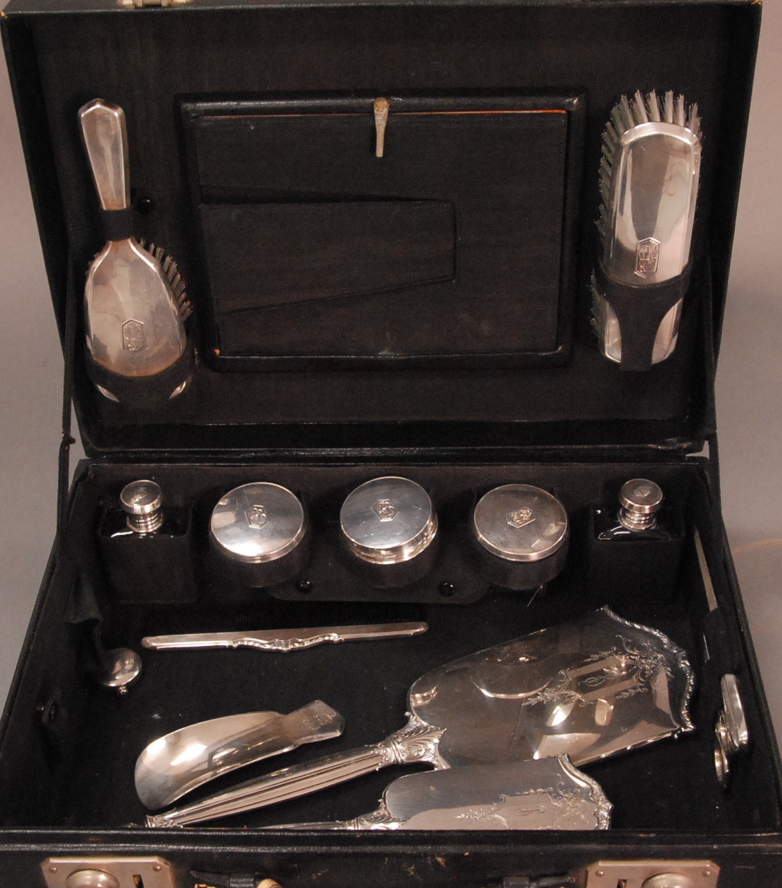 Sterling silver travel dresser set in fitted case including five covered bottles, five piece brush comb and mirror set, scissors, shoe horn, and mirror, case marked Boyle.