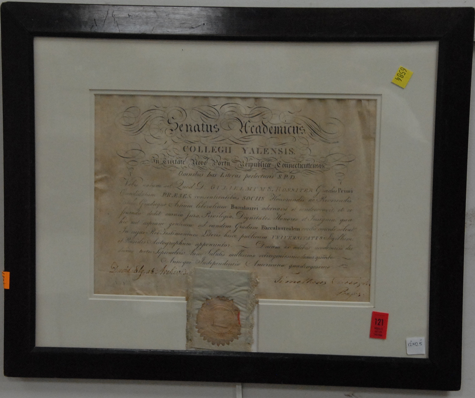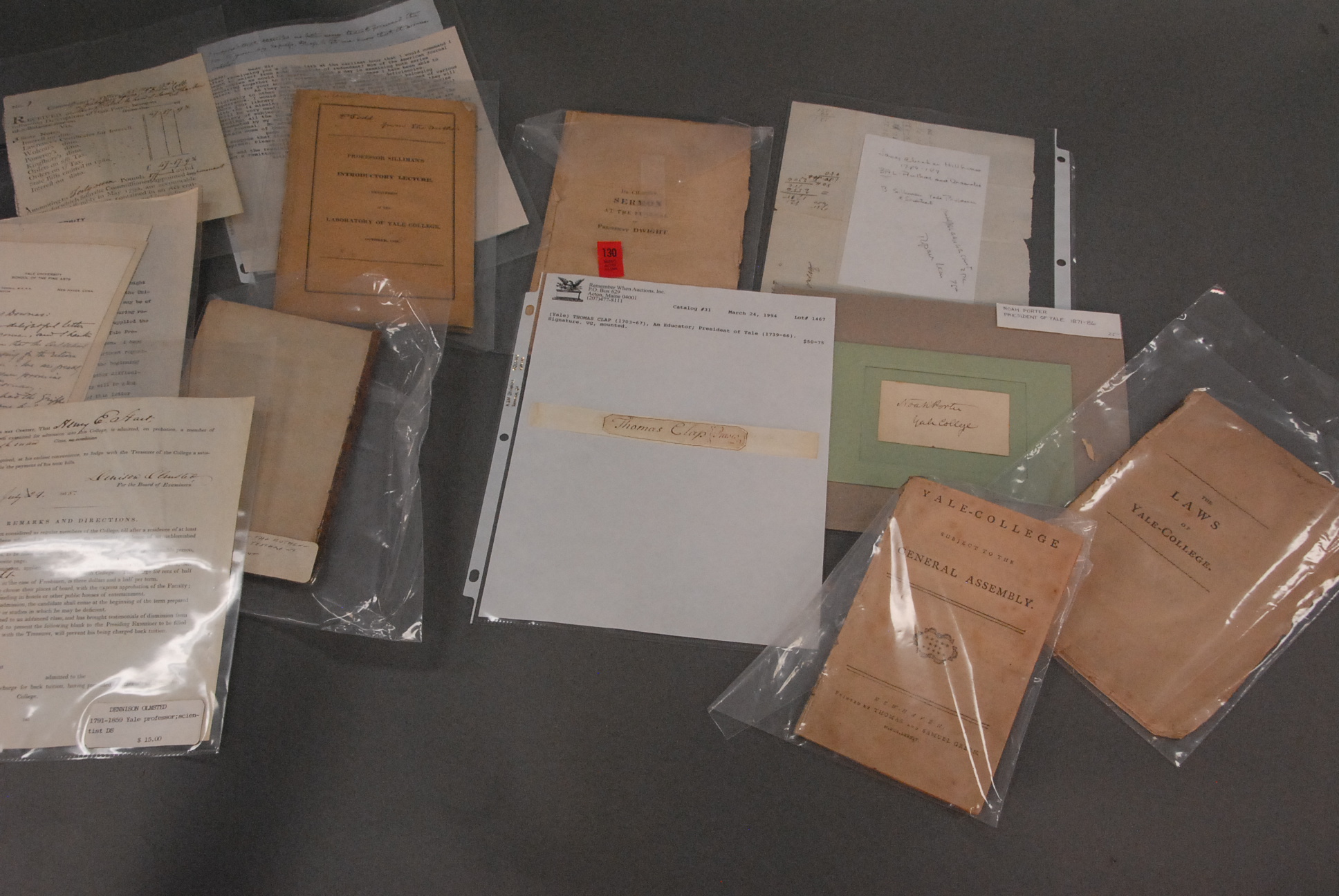 Group lot of Yale ephemera including Yale College General Assembly magazine 1784 and 1793, autograph Thomas Clapp American Educator President of Yale 1739-1766, and autograph of Noah Porter President of Yale 1871-1886.