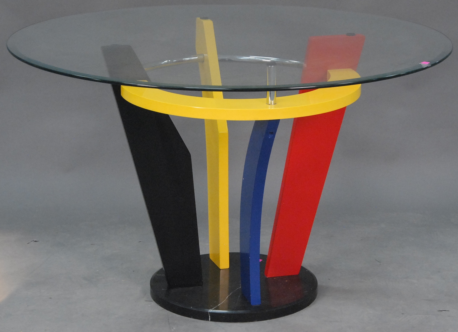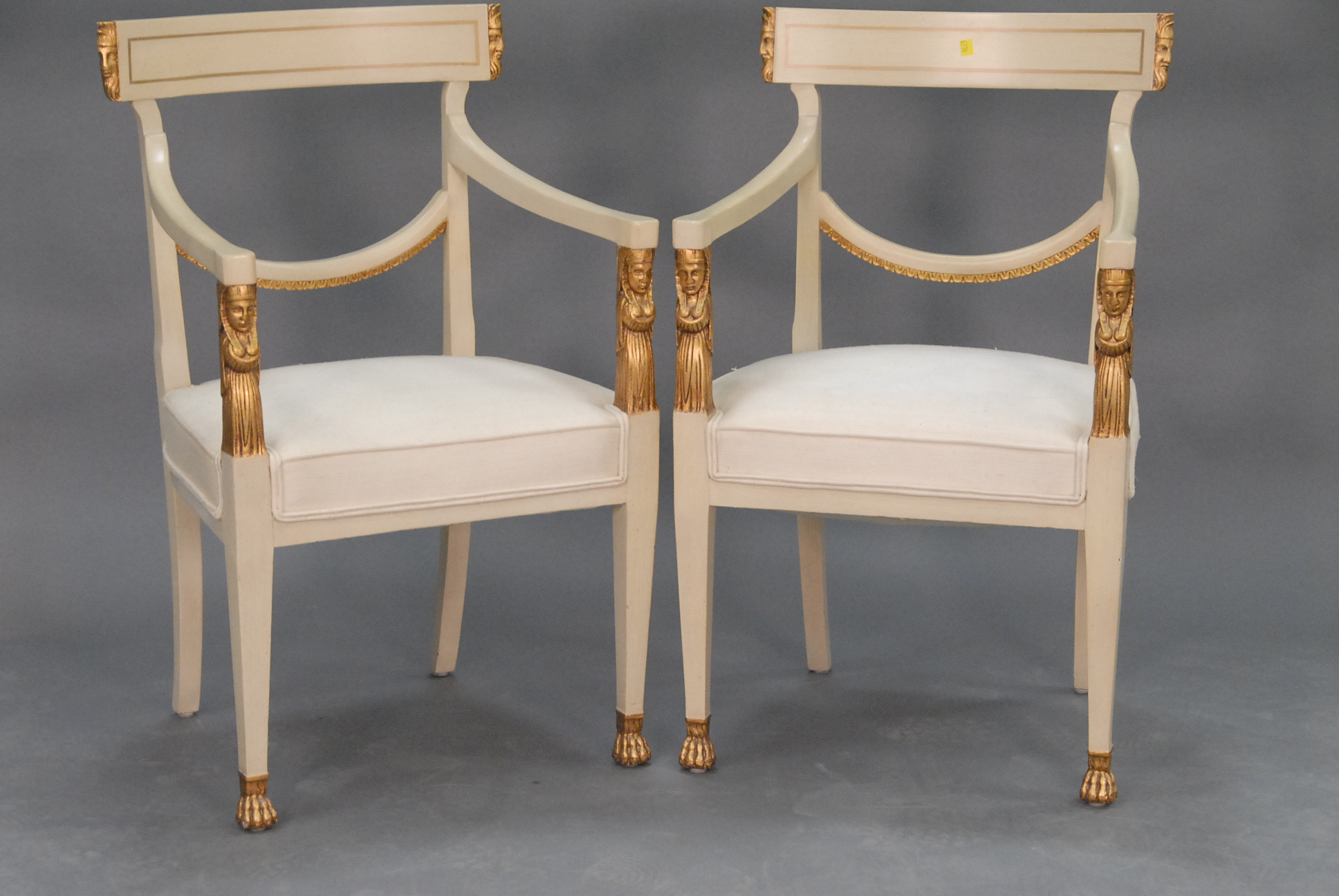 Margolis mahogany Federal style dining table with D shaped ends over conforming frieze all set on square tapered legs with four 12 inch leaves, signed Margolis in need of refinishing. ht. 30in. top: 43 x 61 opens to 109