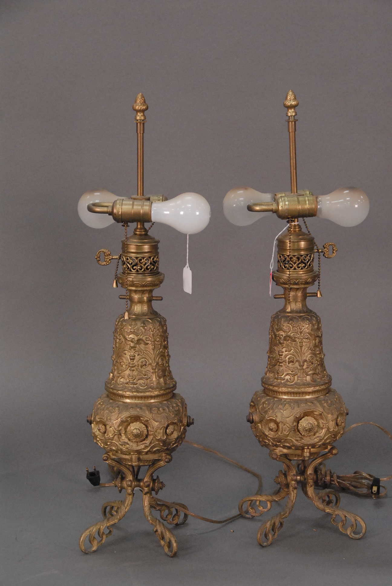 Pair of antique French gas table lamps converted to electricity, late 19th century. Provenance: From prominent Woodbridge, Connecticut family collection. total ht. 26in.