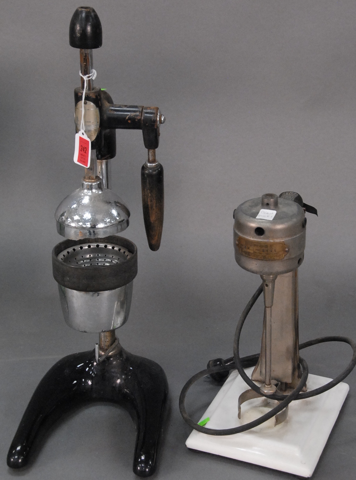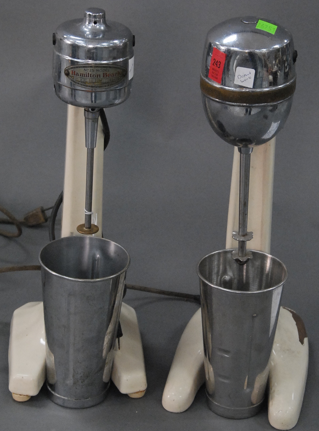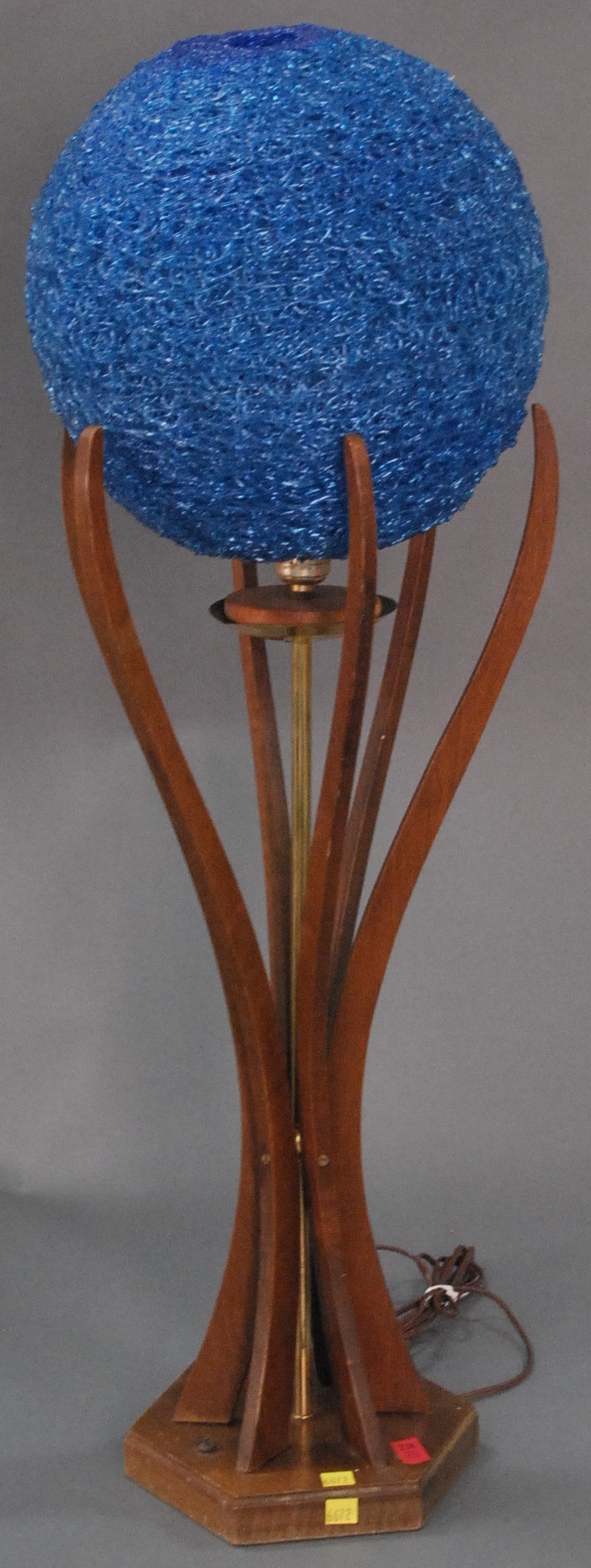Attributed Modeline of California Mid-Century Modern table lamp with walnut finger like prongs enclosing a round threaded acrylic globe shade together with a single table lamp with a black metal & walnut base, both circa 1965.