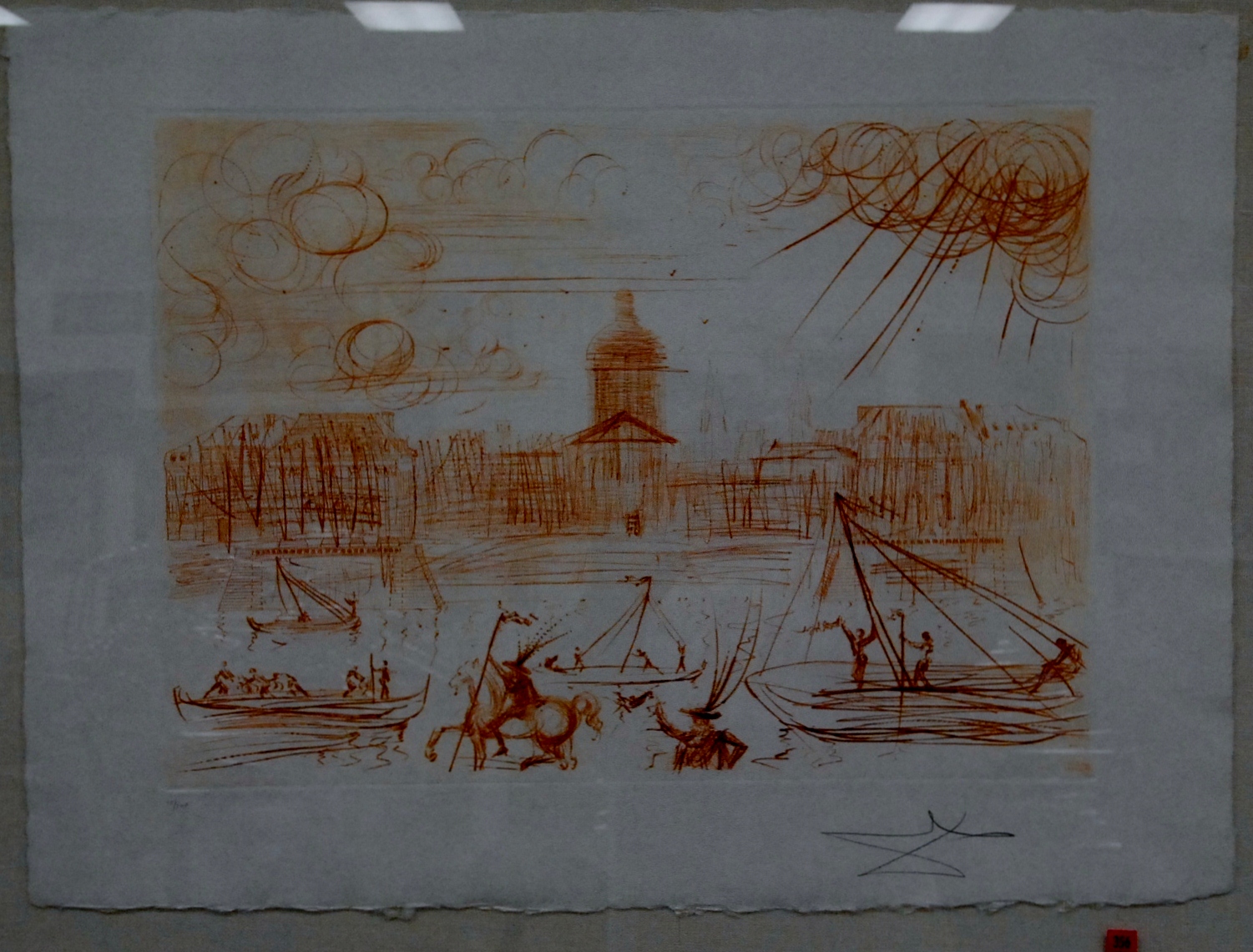 Salvador Dali etching and drypoint Academie de Paris from a later printing of 100 signed lower right Dali and numbered lower left 10/100, 16 3/4 x 23 1/2.