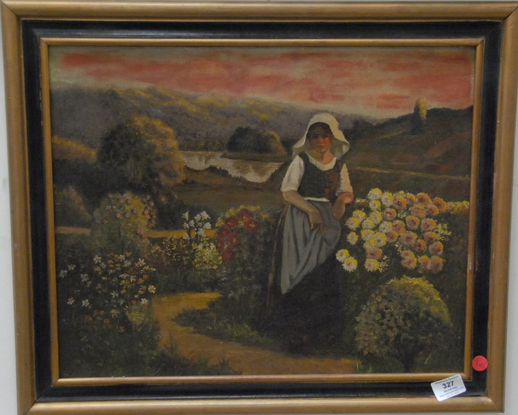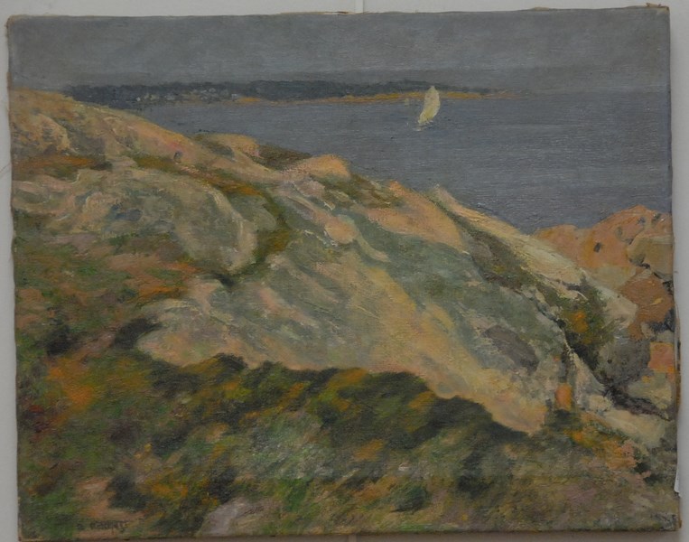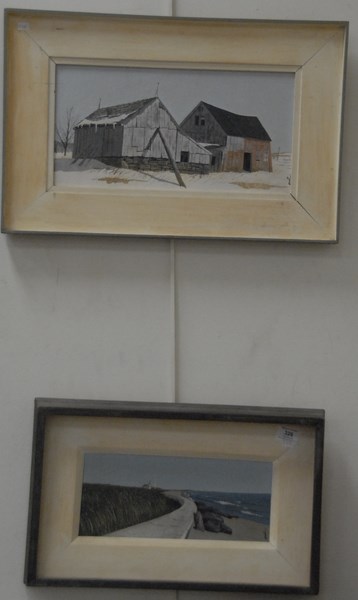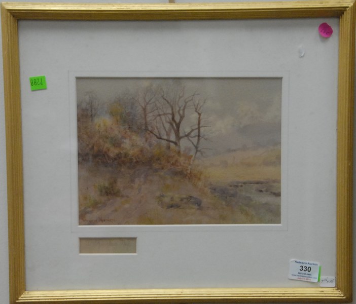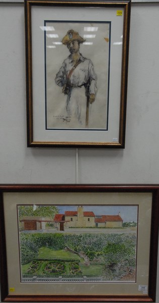 Two paintings to include a Charles Johnson Post 1873-1956 watercolor Fredrick….1897 signed lower left Charles Johnson Post 15 x 9 and a watercolor of a garden signed lower right A. Butera 9-07.