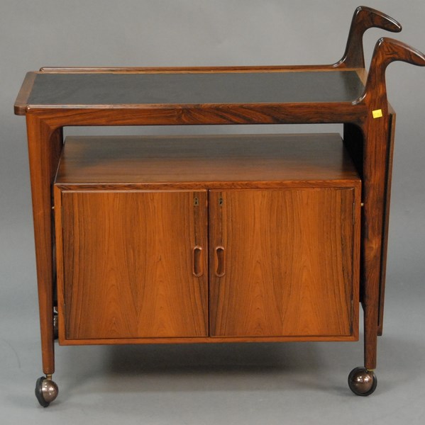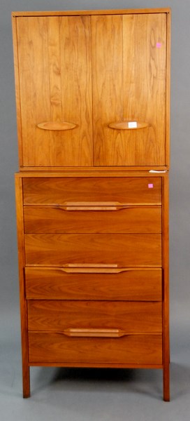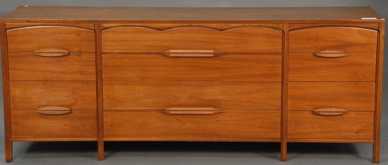 Two piece lot to include John Keal credenza by Brown Saltman California, ht. 32in. lg. 82in. dp. 19in. and Brown Saltman king size headboard ht. 36 in. lg. 82 in.