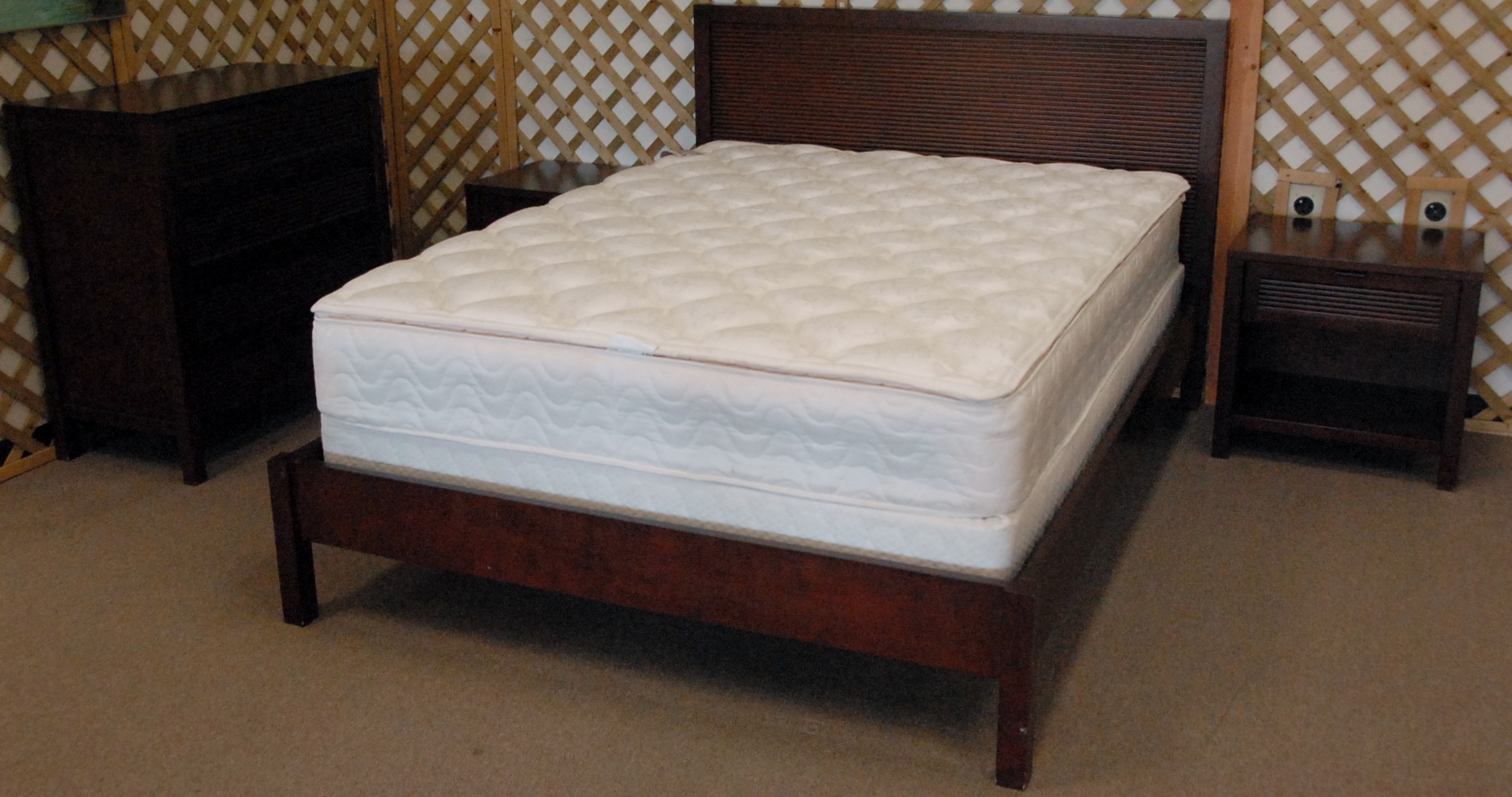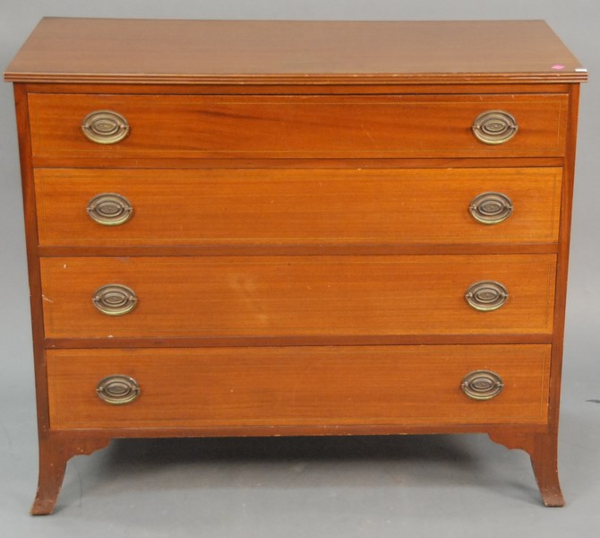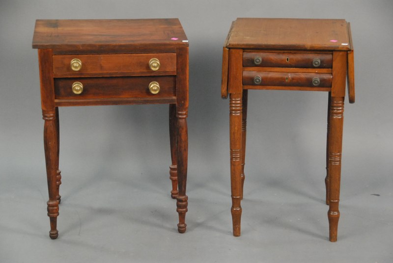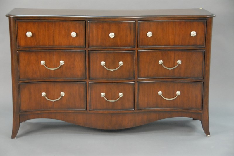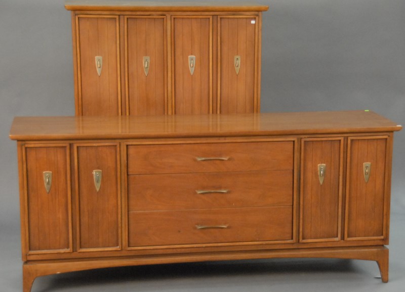 Four piece Kent Coffey lot to include walnut high chest, ht. 52 1/2in. wd. 41 1/2in. dp. 20in., long dresser, ht. 31in. lg. 72in. dp. 20in., and pair of end tables, ht. 25 1/2in. wd. 23in.