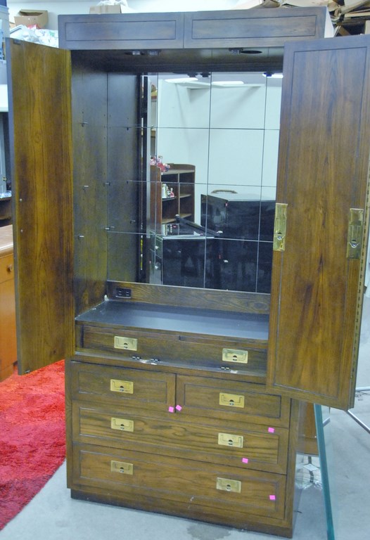 Large Henredon bar cabinet with glass shelves and mirror interior, ht. 82in. wd. 40in.