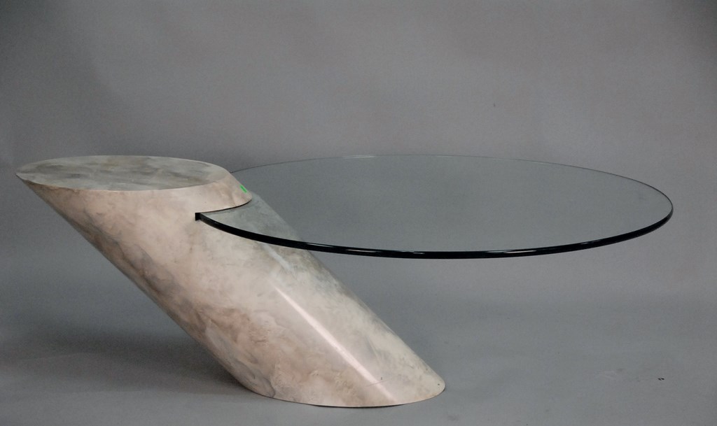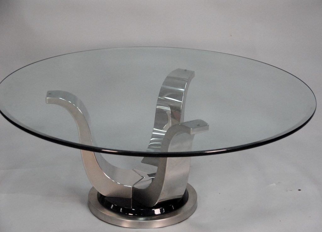 Contemporary glass and chrome coffee table, ht. 19in. dia. 48in.