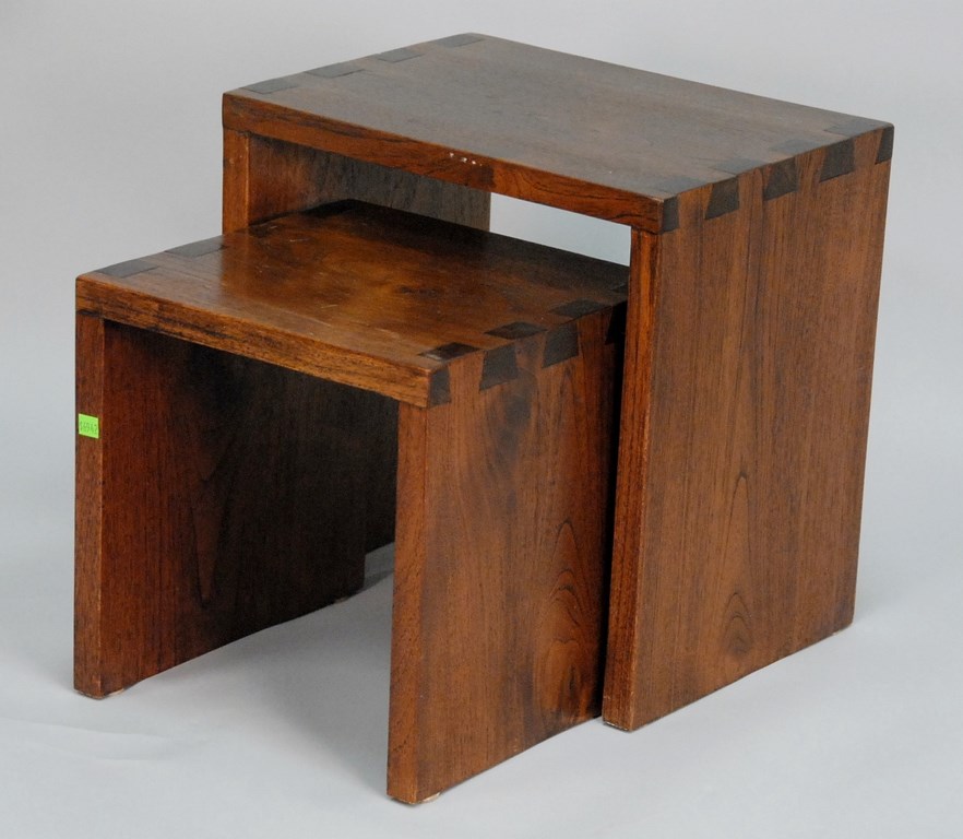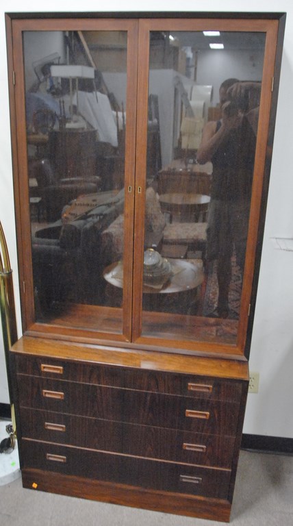 Pair of rosewood two part cabinets having two glass doors above four drawers, attributed to Knud Faerch ht. 73in. wd. 35in.