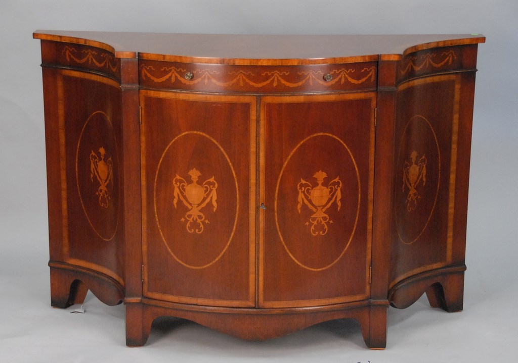 Custom mahogany server with urn inlays, ht. 36in. wd. 56in. dp. 22in.