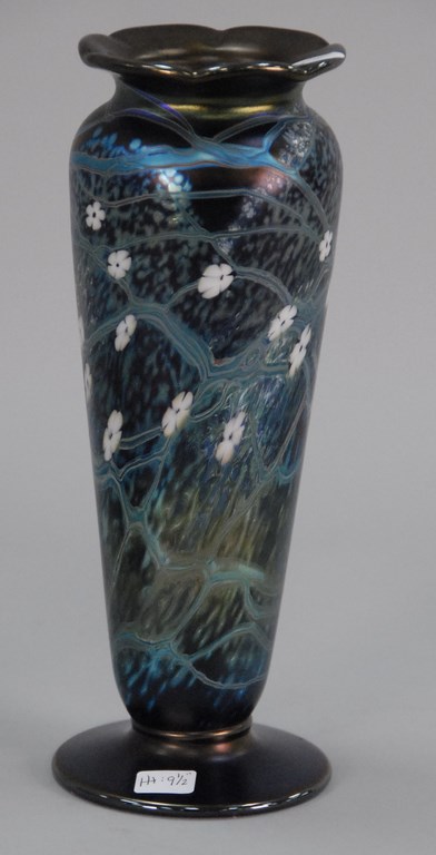 OKRA Glass Studios art glass vase Purple Charlock, ht. 9 1/2in.