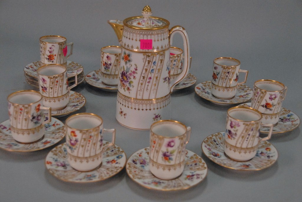 Dresden twenty-one piece tea set to include 10 cups, 12 saucers, and one teapot.