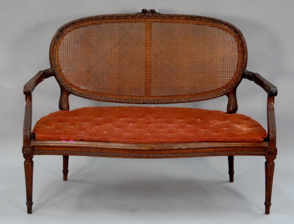 Louis XV style loveseat with caned back and seat two imperfections, wd. 50in.