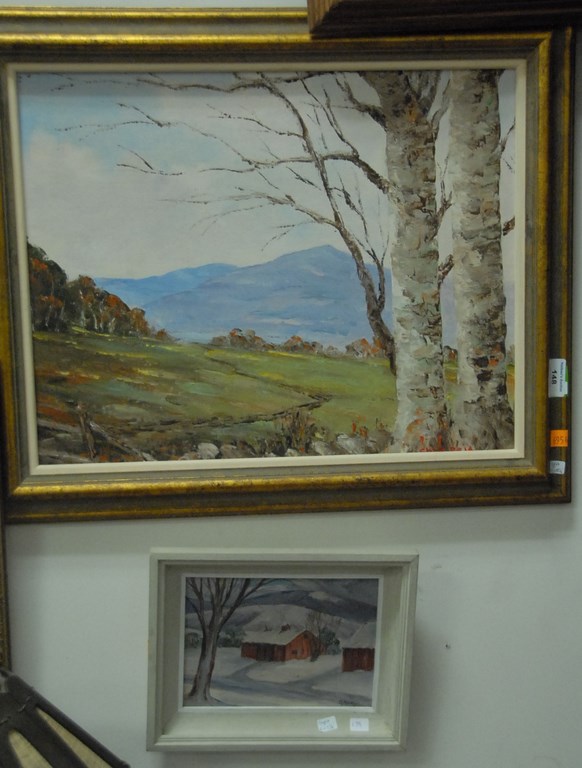 Two oil on board paintings to include Charles Reid 1937 fall landscape 14 1/2 x 19 1/2 sight size and Peter Koster snowscape 6 x 7 1/2 sight size.