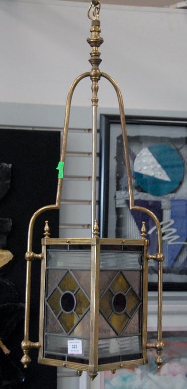 Brass hanging hall light, ht. 30in.