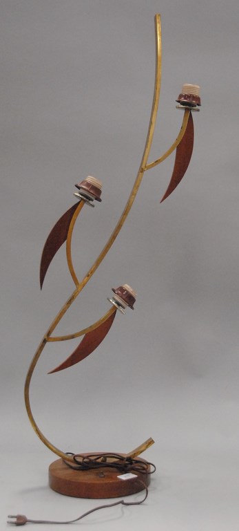 Italian Mid-Century three way lamp in brass and wood.